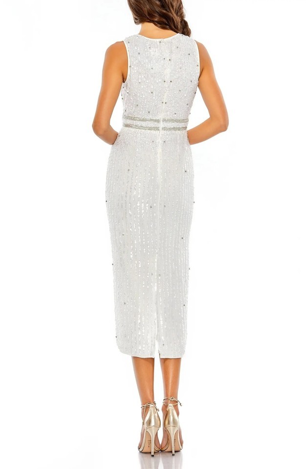 Mac Duggal 10509 Vertical Sequin Midi Sheath Dress SZ 8 ($398) White
