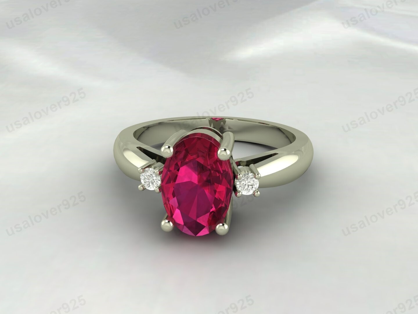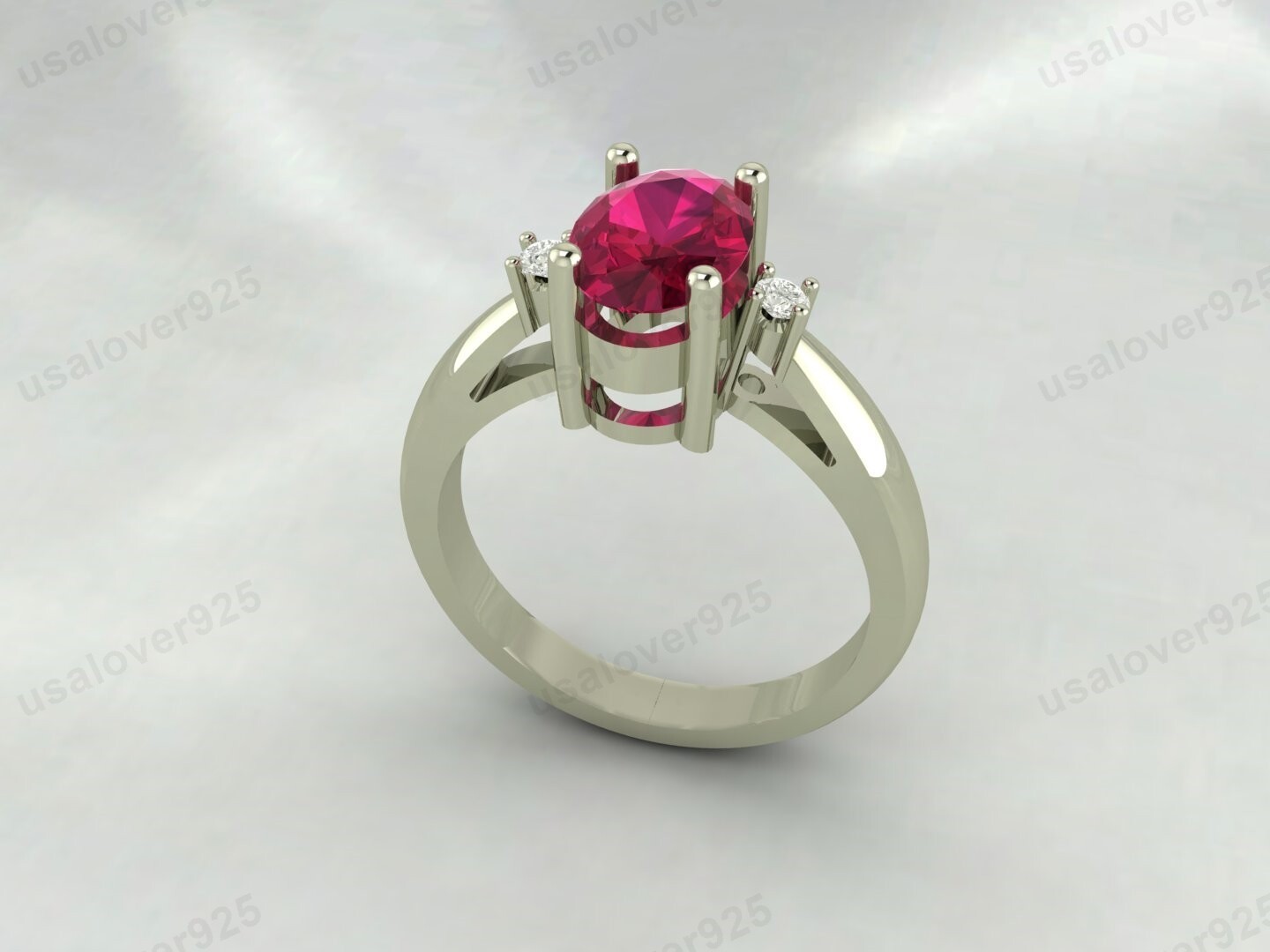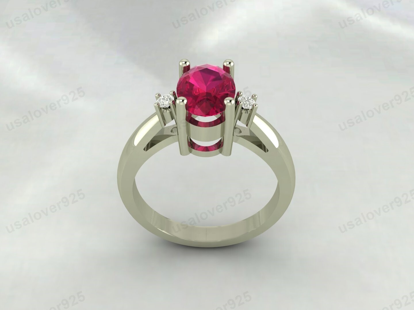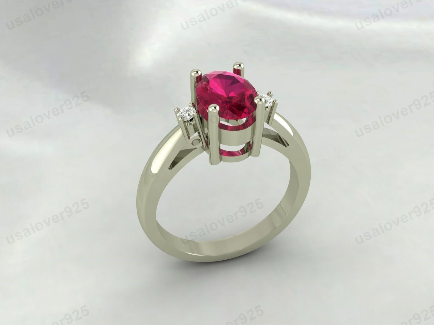 Ruby Oval Gemstone Women Solitaire Ring, 925 and 50 similar items