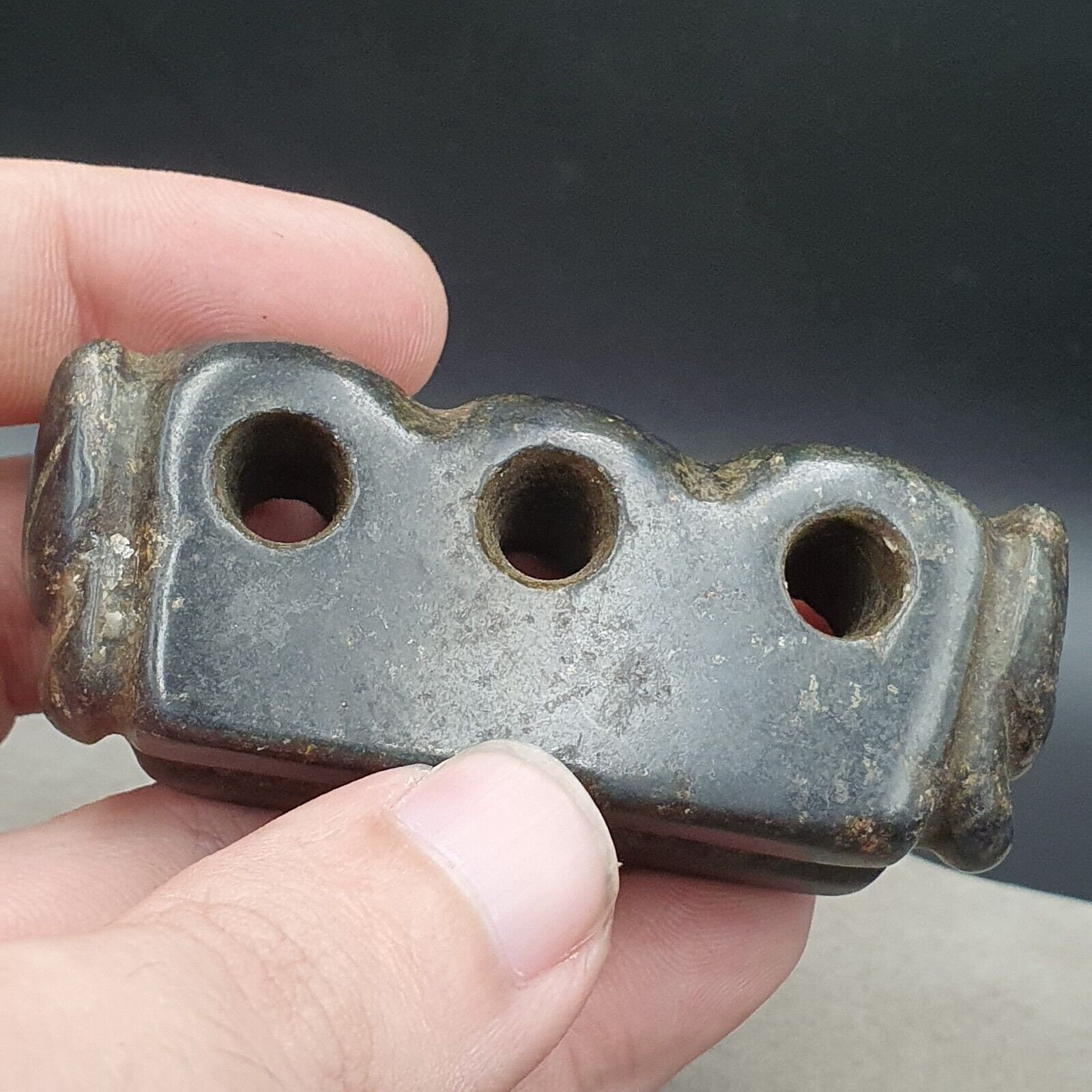 Antigua piedra negra de jade tallada a mano amuleto colgante de cuentas