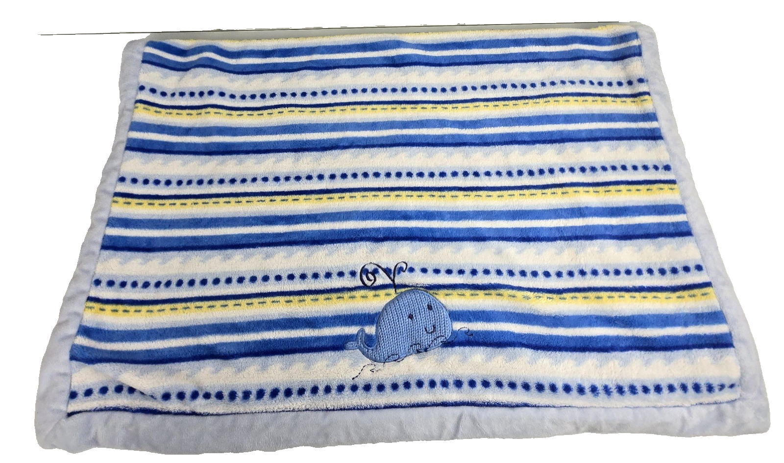 Koala Baby Blue Stripe Whale Blanket Soft Plush Fleece White Yellow-Green 30x40"