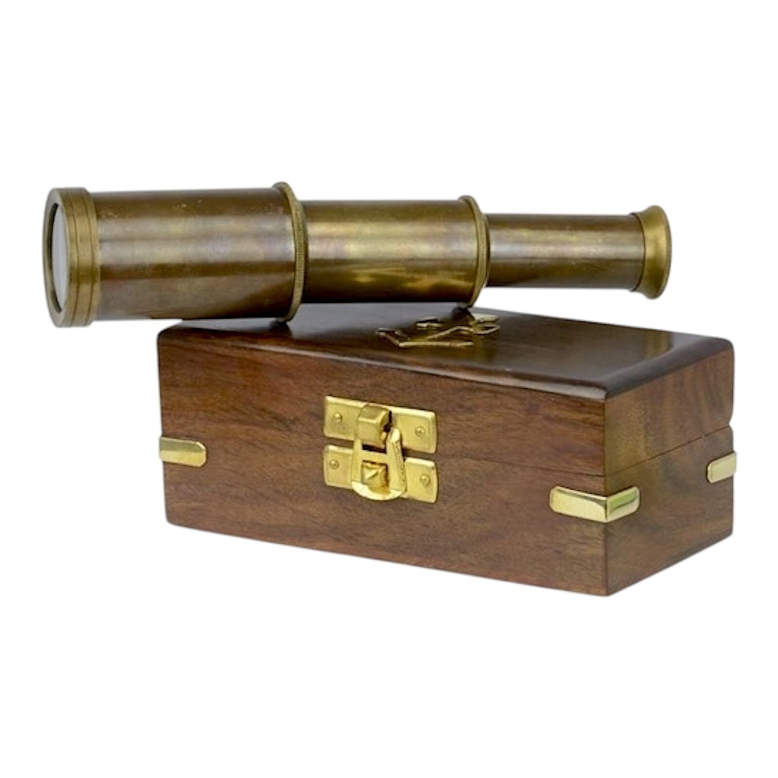 Made from high-quality brass, with a sturdy wooden box included for presentation or storage. This monocular is built to last and make a lasting impression.