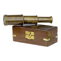 Brass Monocular with Wooden Box Spyglass Nautical Marine Telescope Pirate Explorer Collectible Sailing Decor 5.90 inches