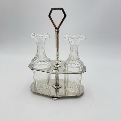 This is an antique 19th century Ercuis France Perles silverplate oil and vinegar cruet, designed in the Victorian style. The cruet is missing its topper. The piece is believed to date back to the years 1850-1899.