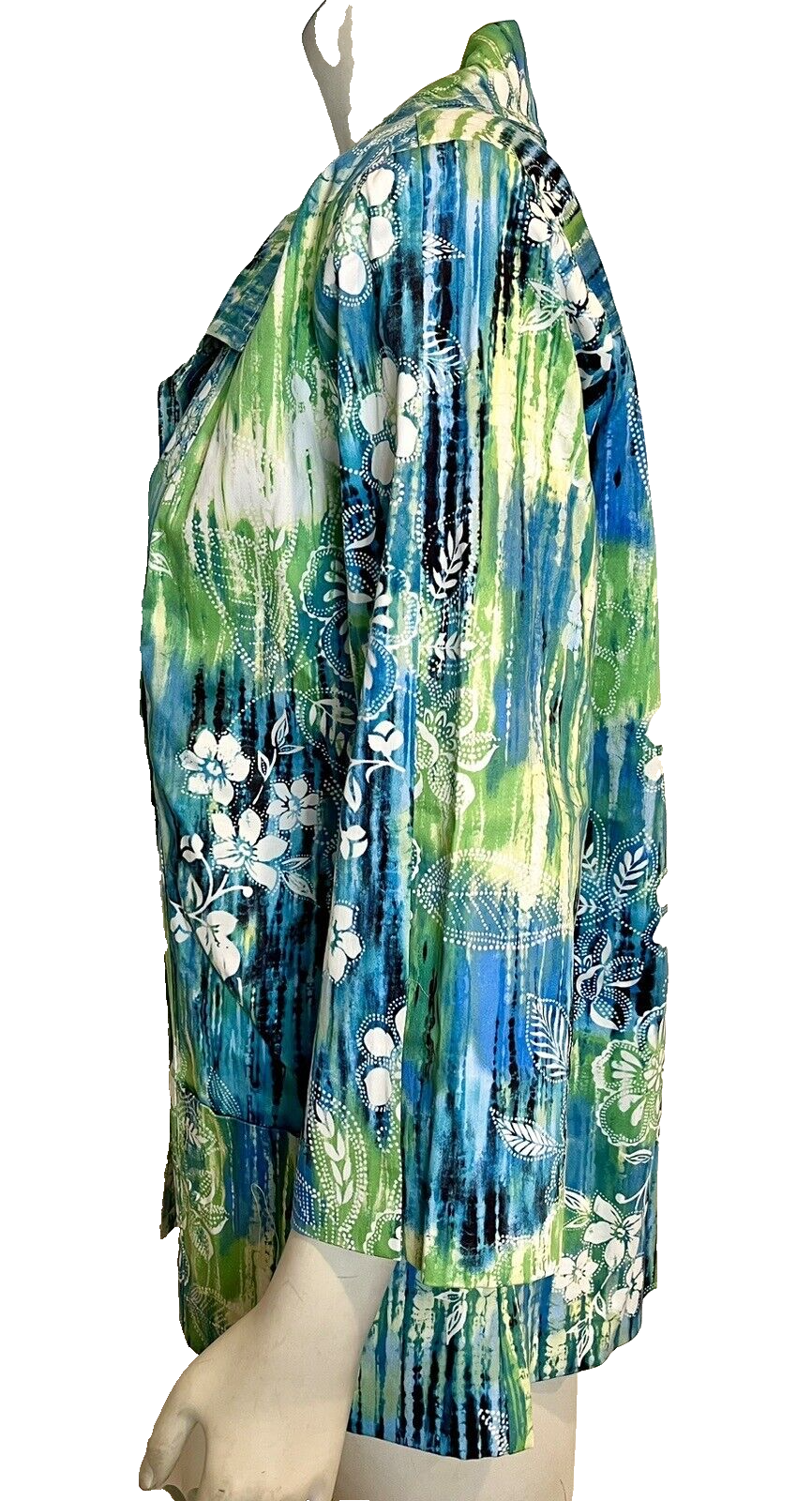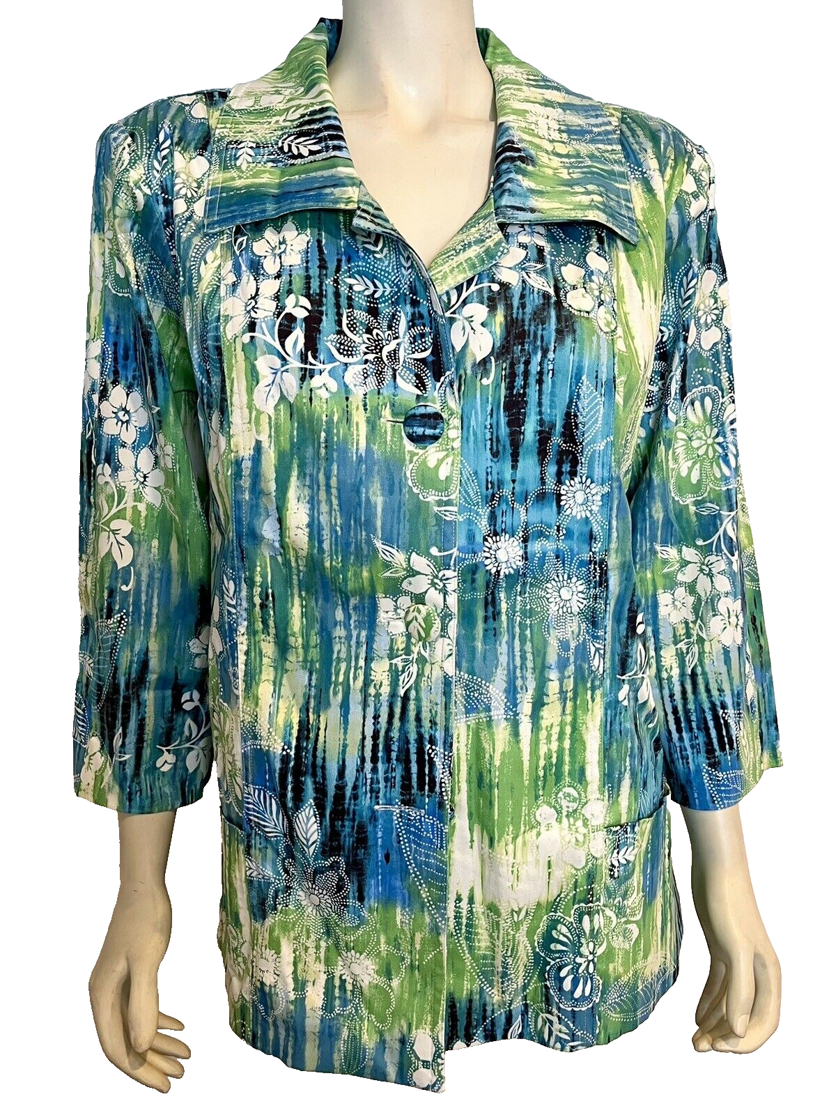 New without tags! Draper's Damon's Blue, Green, White Floral Print 3/4 Sleeve Button Front Collared Jacket