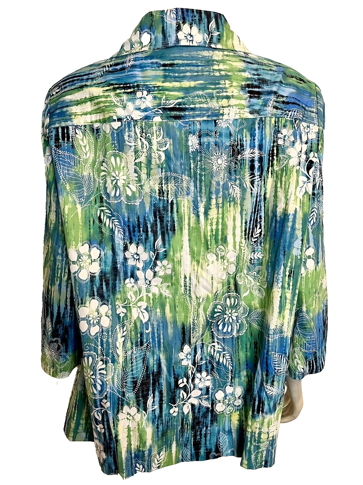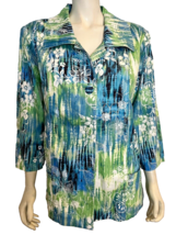 NWT Draper's & Damon's Blue, Green, White Floral Print 3/4 Sleeve Jacket Sz XL