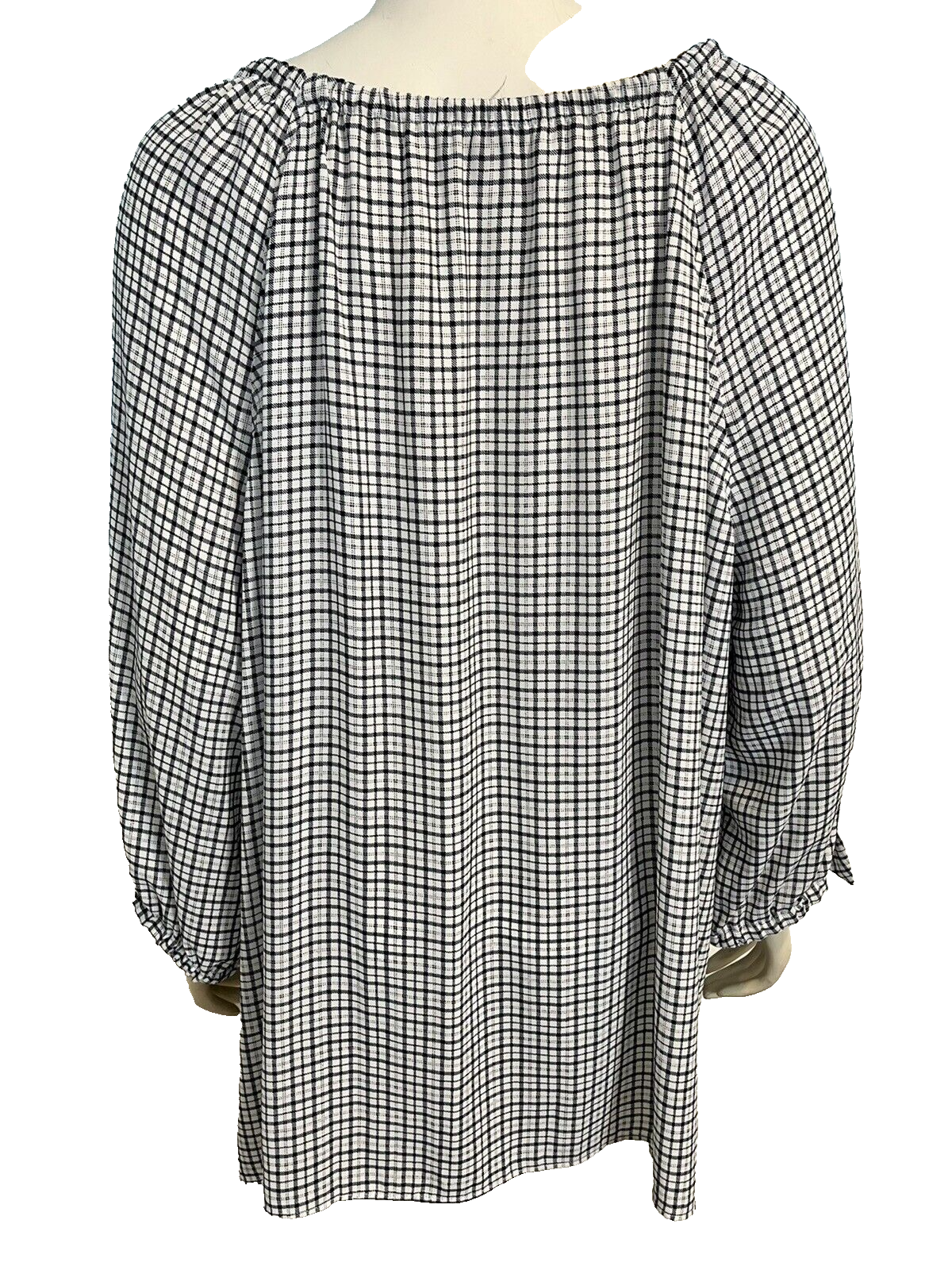 NWT Talbots Woman White and Navy Checked 3/4 Sleeve Scoop Neck Top 3X