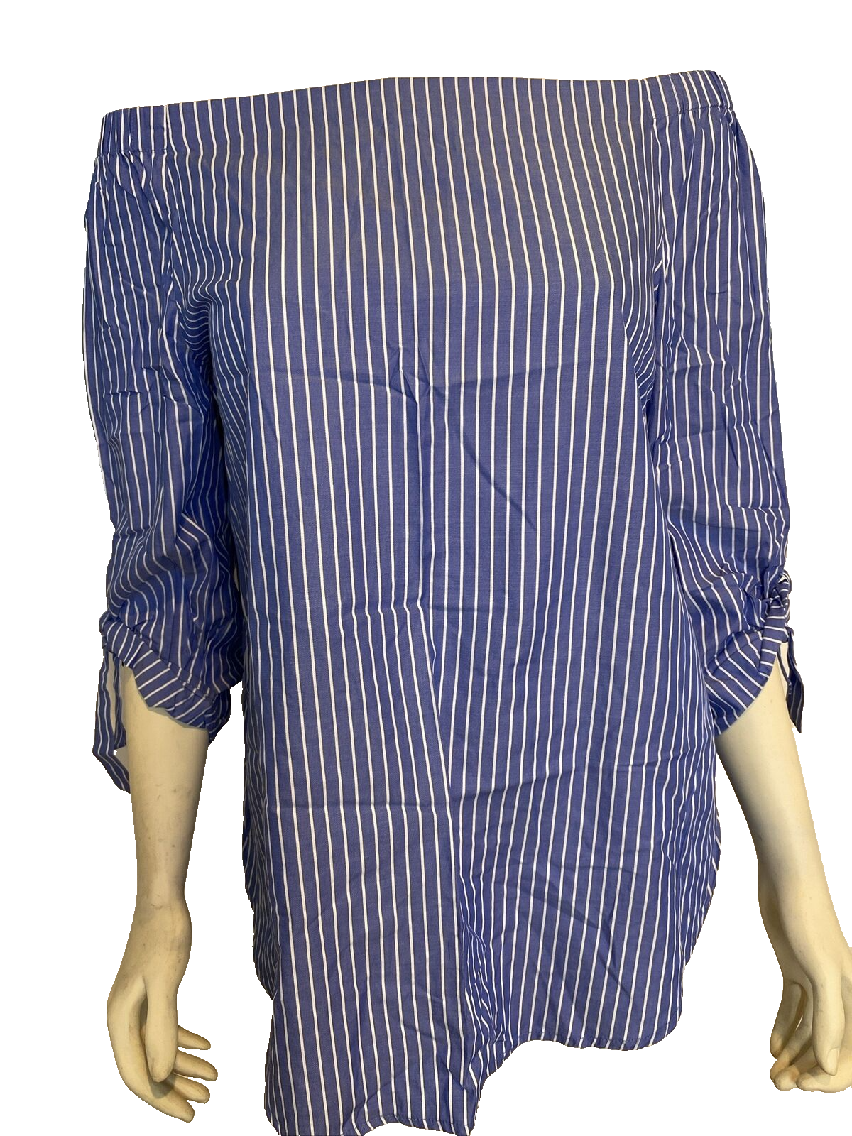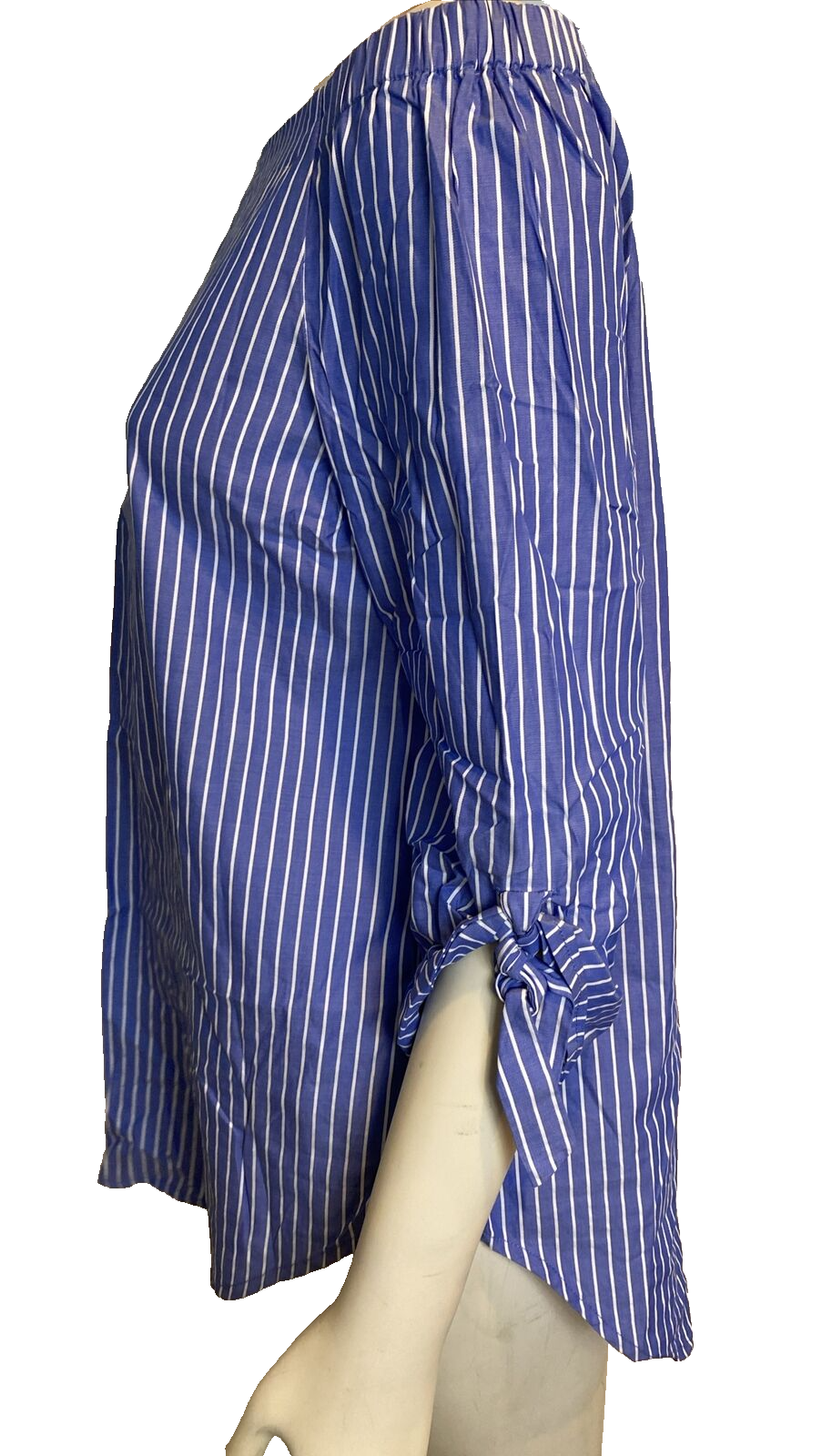 J. McLaughlin Women's Woven Off-The-Shoulder Blouse Blue/White Striped Large