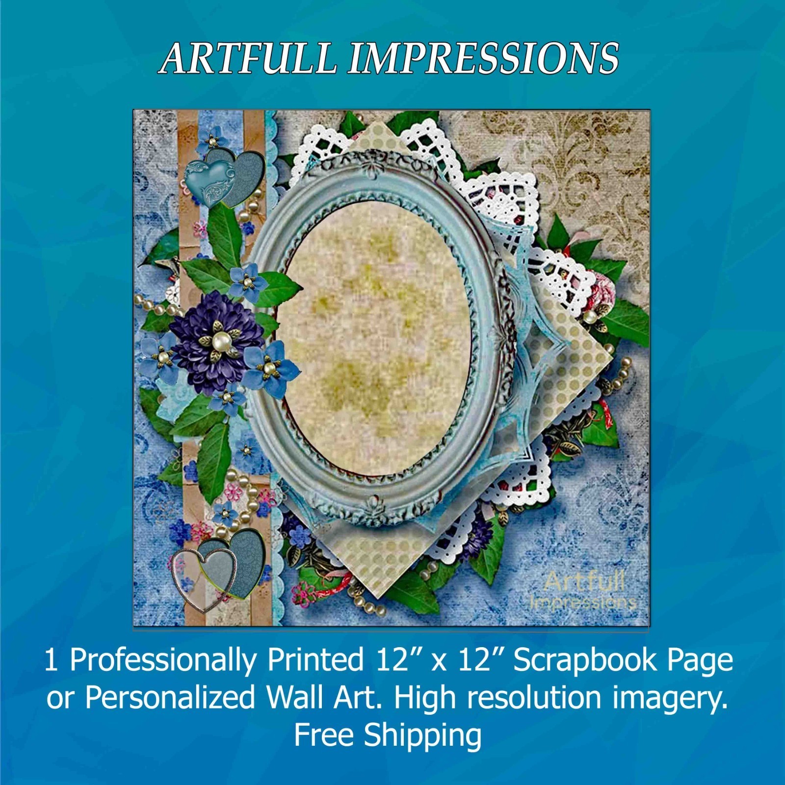 Elegant Blues, Oval Frame & Lace Layers Personalized Wall Art or Scrapbook Page