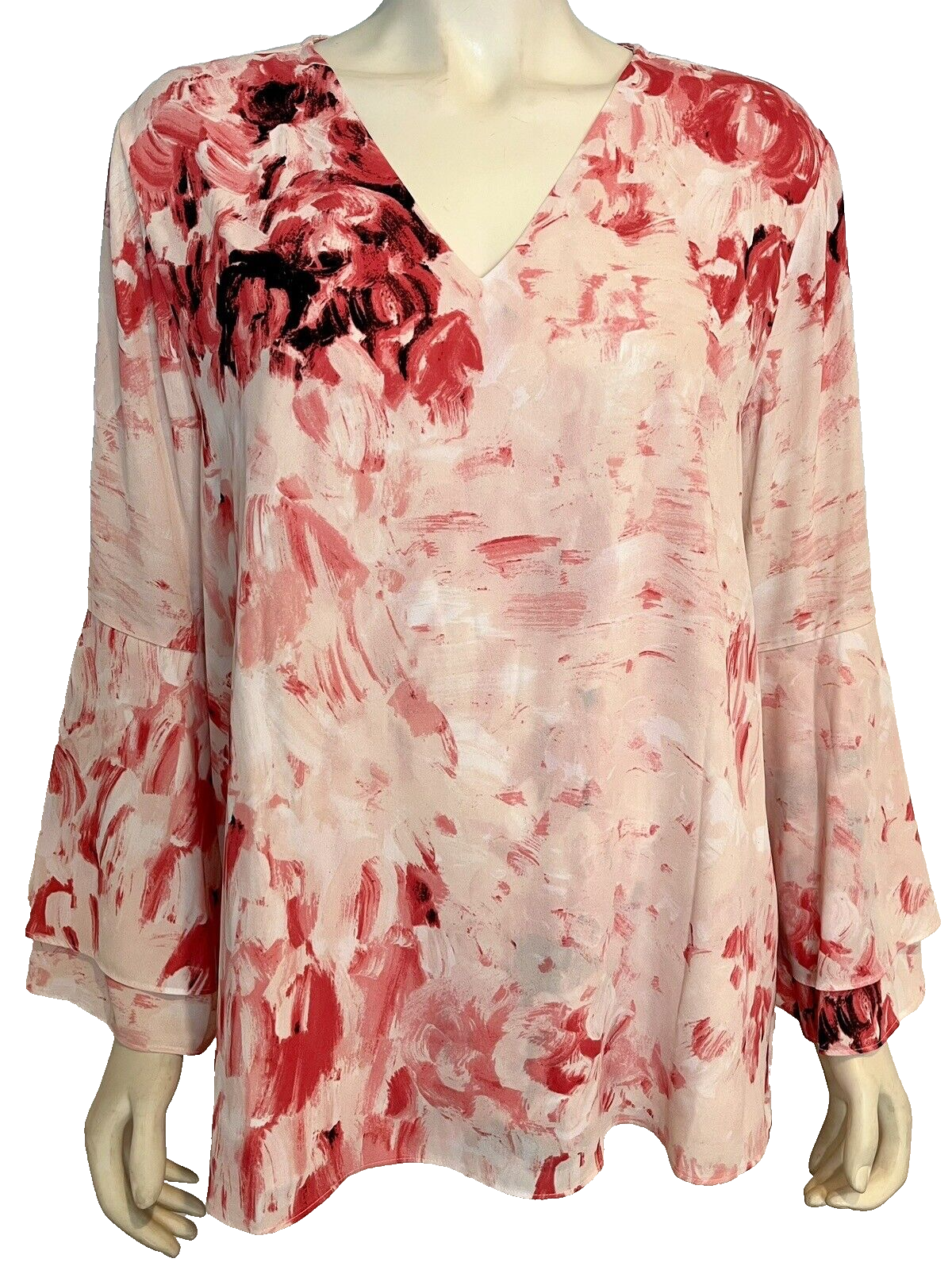 NWT Alfani Pink Floral V Neck Flutter Sleeve Top Size 16