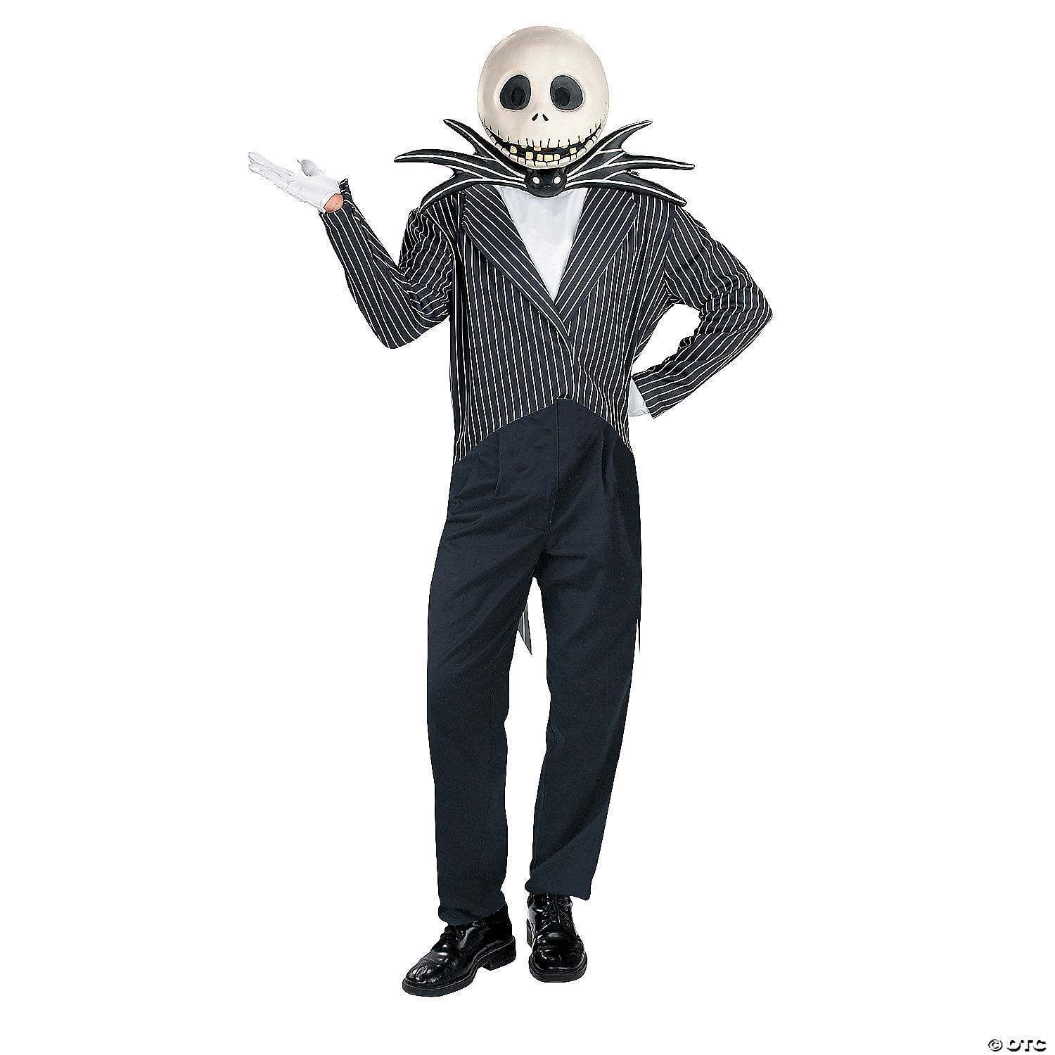 Jack Skellington Deluxe Adult Costume. From the Tim Burton Favorite , Nightmare Before Christmas! Includes : Tails jacket, vinyl bat bow tie and Jack Skellington vinyl over-the-head mask. Available size: Fits up to size 46 (47.5" chest) Are you looking for a great couples costume this Halloween season? Check out this instructional video to see how a professional makeup artist pairs Jack Skellington with her perfect Sally Look. For step-by-step directions on how you can complete The Nightmare Before Christmas duo, click here. Pants and gloves not included. This is an officially licensed Disney.Special Shipping Information: This item ships separately from other items in your order. This item cannot ship to a P.O. Box. This item may be subject to additional processing days.ITEM IS NOT ELIGIBLE FOR EXPEDITED SHIPPING