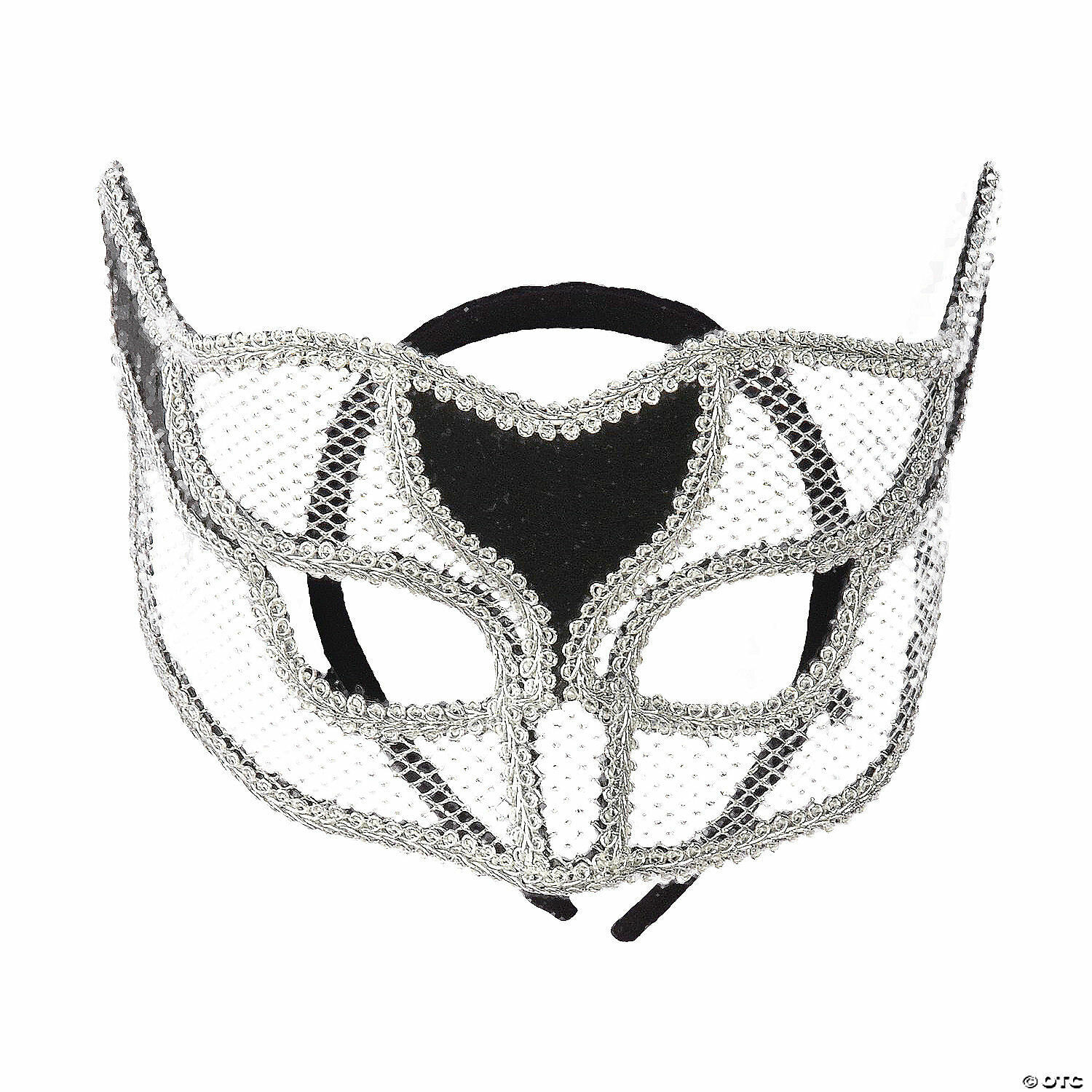 Perfect for Mardi Gras, Carnivals and Masquerade Balls! Includes: Elegant netted half mask with headband. The mask has an attached, rigid plastic, "U" shaped headband that allows the mask to swivel over the face or up over the head. Available Sizes: One size fits most 12 and up