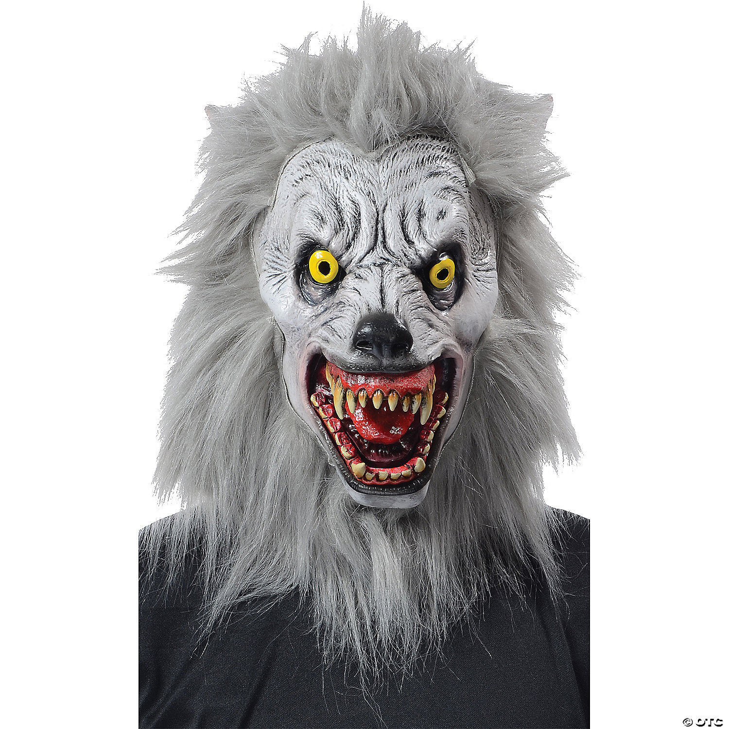 Albino Werewolf Adult Mask. A rare white wolf is a hunter's dream trophy, but watch out for his bite. Includes: Full over-the-head deluxe latex Werewolf mask with fur and realistic teeth. Available Size: One Size fits most Adults. Please read this valuable information regarding latex products.