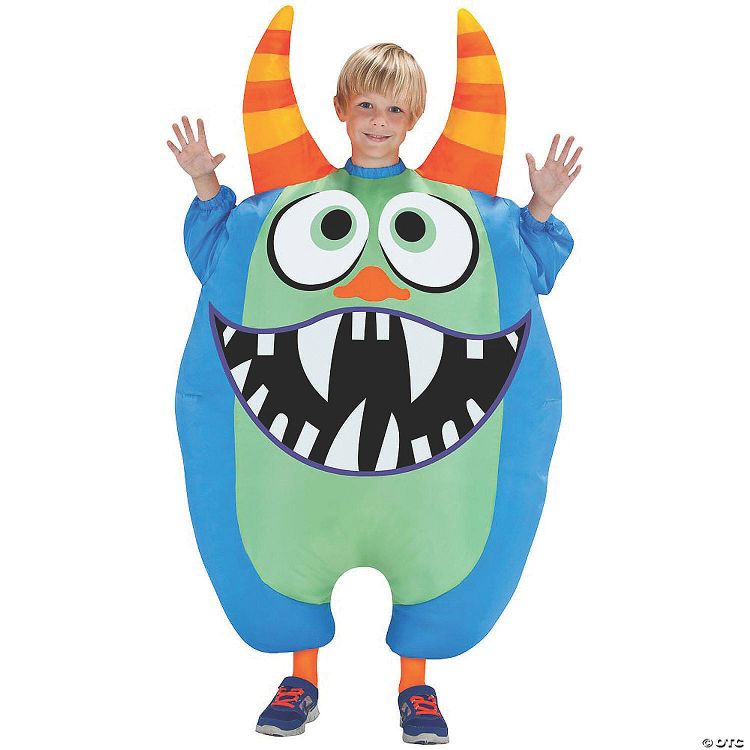 Now any kid can claim to be the biggest monster around! Slip on this Inflatable Blue Scareblown Costume and scare up all the Halloween fun you can handle. As much fun to look at as it is to wear, this colorful Halloween costume for kids includes a full-body costume that fits most kids, a battery pack and fan required to keep the inflatable costume looking amazing all night long, and a detailed instruction sheet for operation and care of the costume. Requires 4 "AA" batteries, not included.