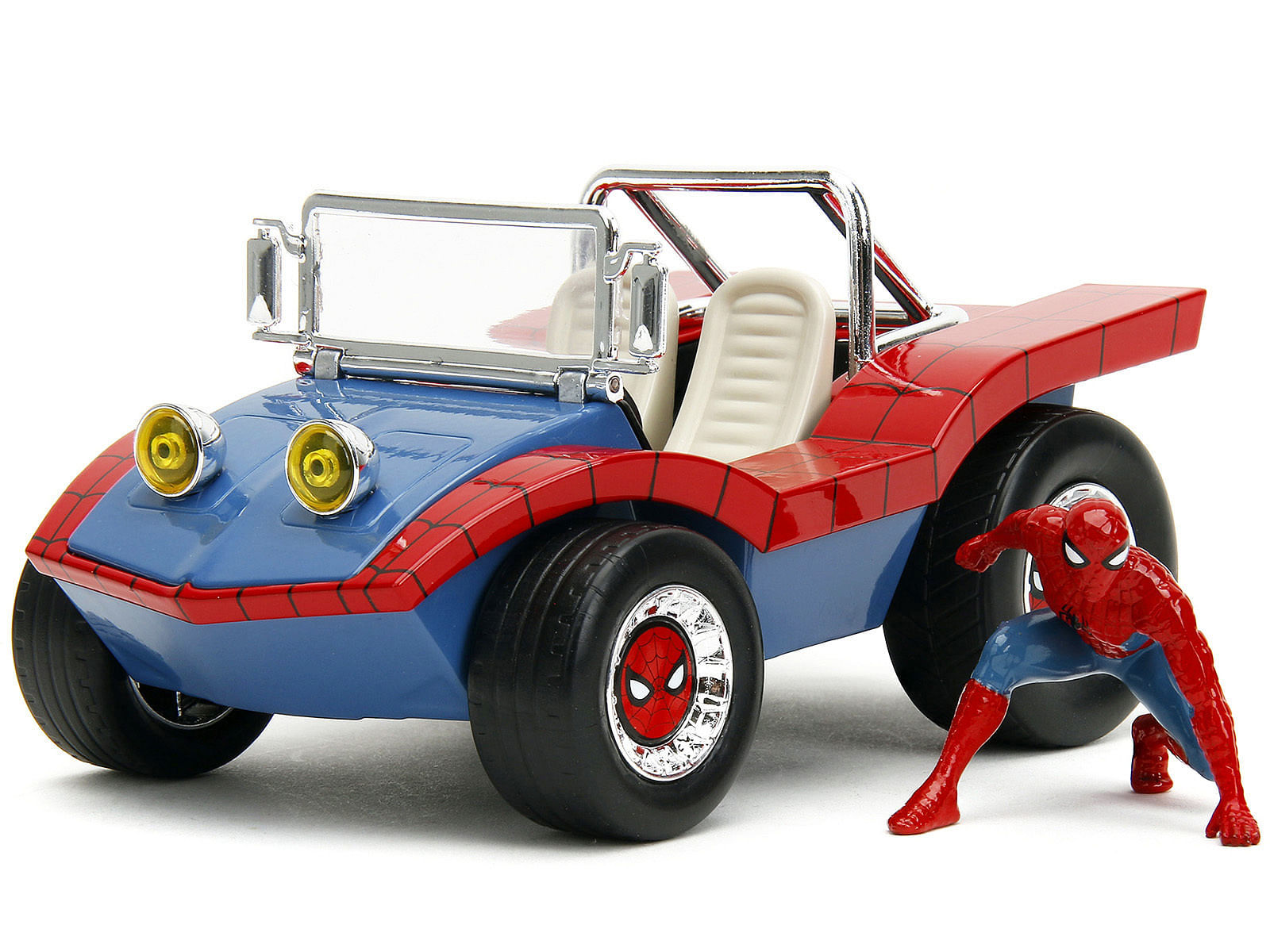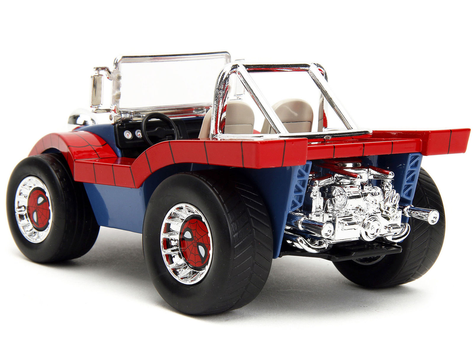 Brand new 1/24 scale diecast model of Dune Buggy Red and Blue with Graphics and Spider-Man Diecast Figure "Marvel Spider-Man" die cast model by Jada. Brand new box. Real rubber tires. Detailed interior, exterior. Officially licensed product. This model does not have any openings. Manufacturer's original unopened packaging. Made of diecast metal with some plastic parts. Spider-Man figure is approximately 1.5 inches tall. Dimensions approximately L-5.25, W-3.5, H-3 inches. Please note that manufacturer may change packing box at any time. Product will stay exactly the same.