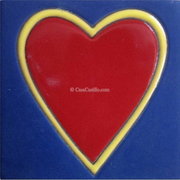 Ceramic High Relief Malibu Tiles Handcrafted - Corazon - (you select the size)