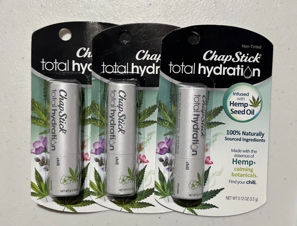 3-Chapstick Total Hydration Chill Hemp Seed Oil Infused Lip Care Balm.