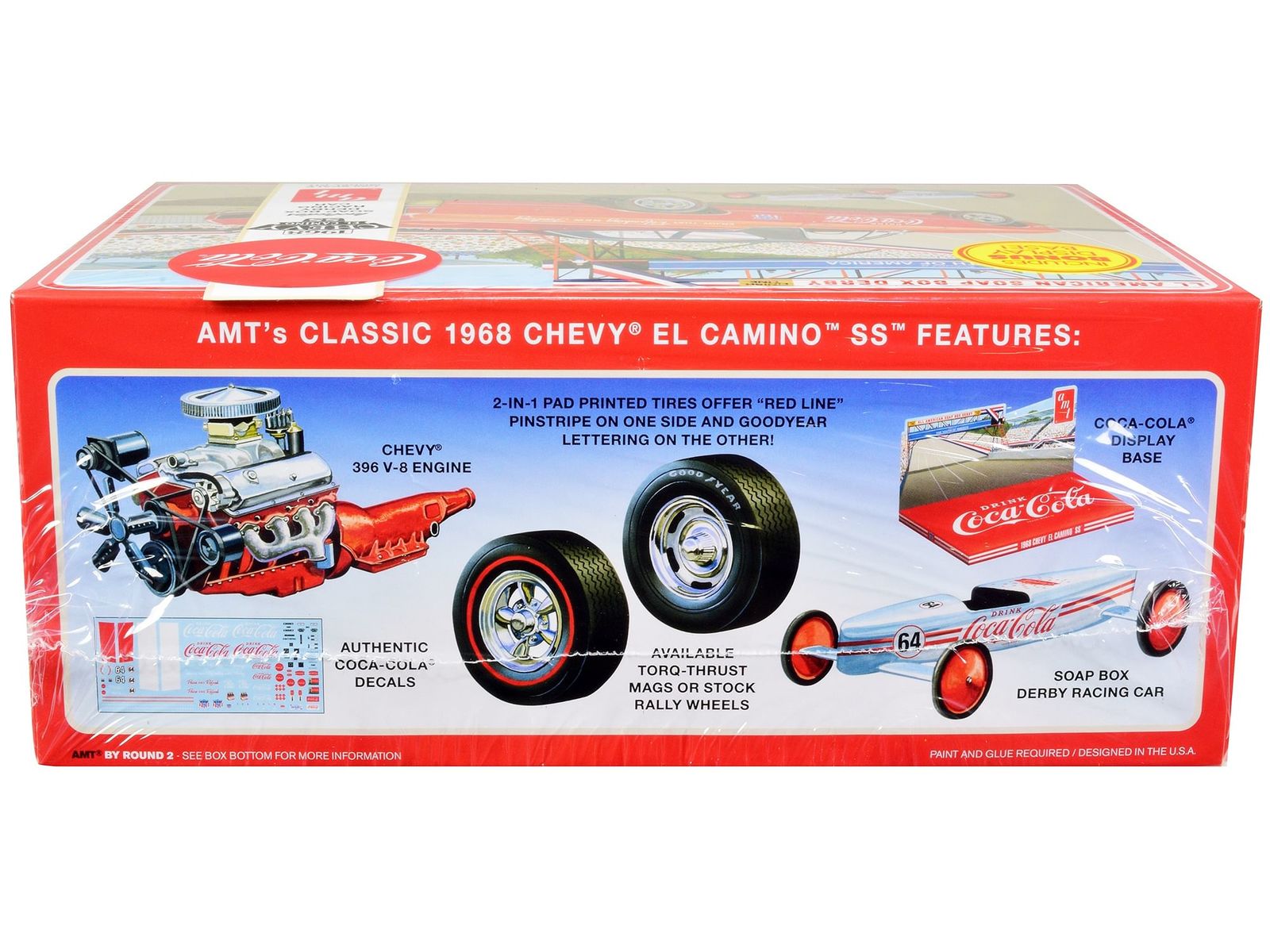 2-in-1 Model Kit: Build either a 1968 Chevrolet El Camino SS or a Soap Box Derby racer Officially Licensed Product: Authentic details and iconic Coca-Cola branding Skill Level: 3 - Challenging yet rewarding build for experienced modelers Includes 118 Detailed Parts: Comprehensive kit with everything you need to create your masterpiece Vibrant Decal Artwork: Bring your model to life with authentic colors and graphics