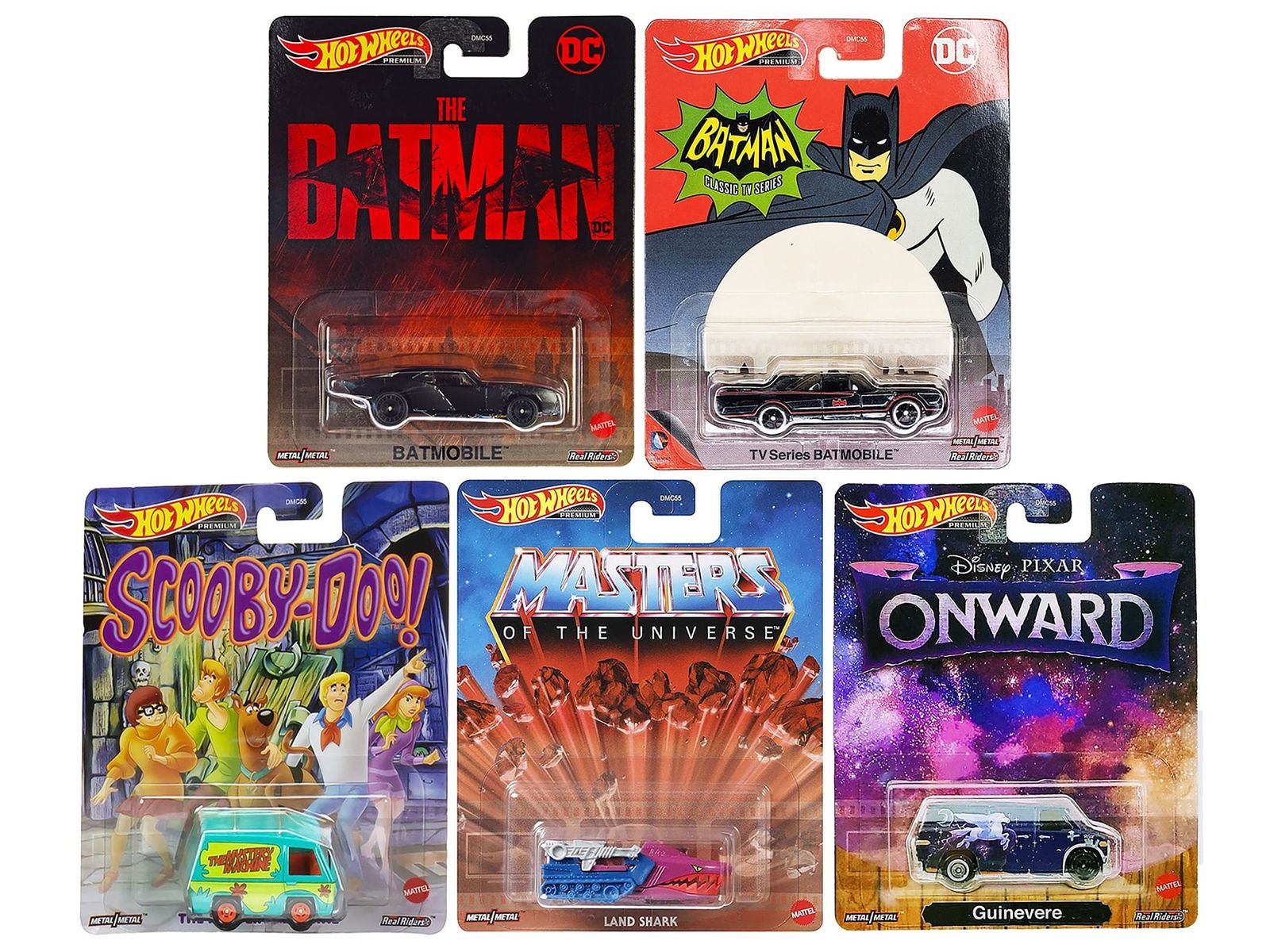 Remember the thrill of watching your favorite cartoons or movies, imagining yourself behind the wheel of those incredible vehicles? Now you can relive those childhood moments with the "Retro Entertainment 2022" G Case 5 piece Set diecast model cars by Hot Wheels. This meticulously crafted collection brings to life five iconic automobiles that have captured hearts and imaginations for generations. Each model is a miniature masterpiece, capturing the essence of these beloved characters and their legendary vehicles.