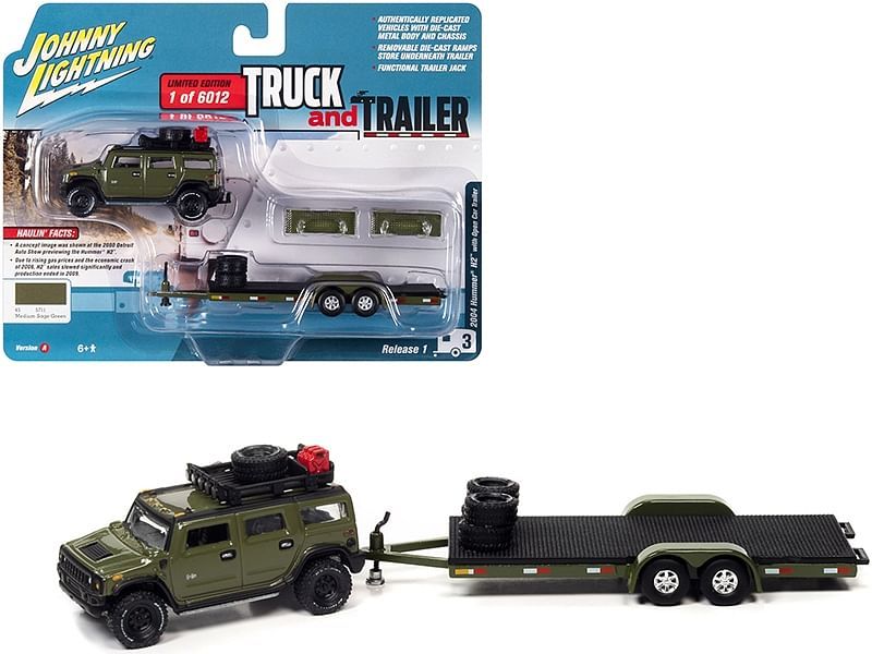 2004 Hummer H2 Medium Sage Green with Open Trailer Limited Edition