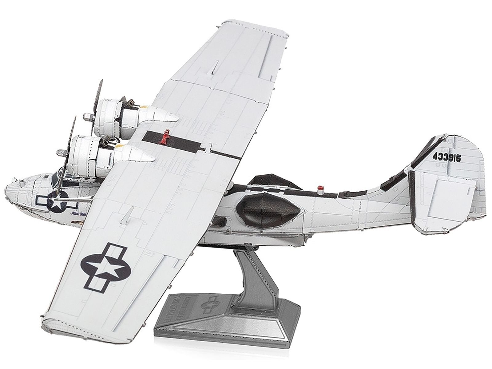 Authentically Detailed: With 79 precise parts, you can experience the intricate details of the PBY Catalina "Miss Pick Up" up close. Ready-to-Assemble: No glue or paint required! Just follow the instructions and start building. Built to Last: Crafted from durable steel, this kit promises a long-lasting display piece that will endure for years. Display Stand Included: Enhance your model with a built-in stand for perfect presentation and a touch of elegance.