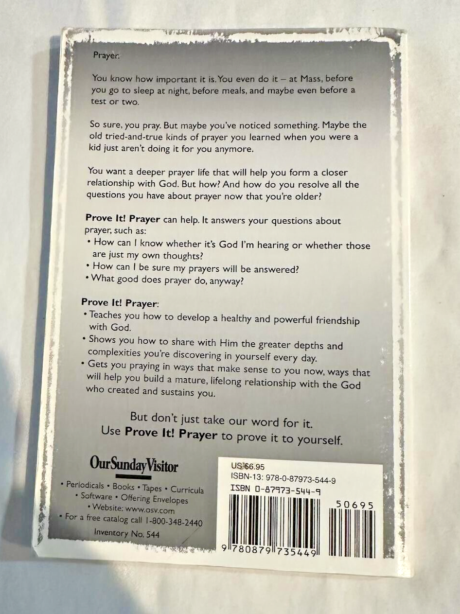 This preowned copy of Prove It! Prayer by Amy Welborn is in excellent condition, featuring clean pages and minimal shelf wear. A fantastic resource for Catholic teens, this book explores how to develop a deeper, more meaningful prayer life and addresses key questions about faith and spirituality.