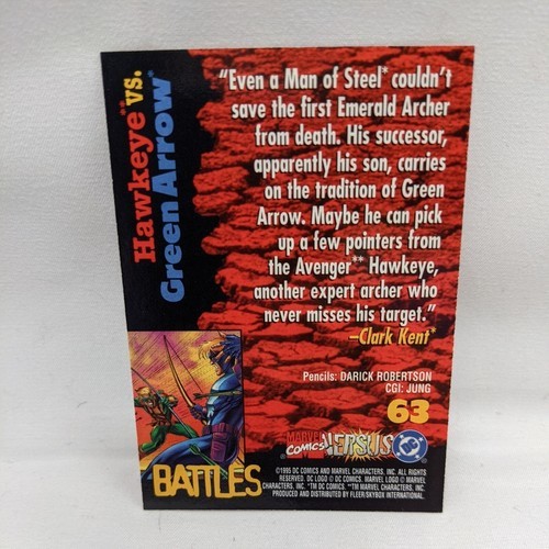 Marvel Versus DC Trading Card Hawkeye Green Arrow 1995 Fleer Skybox #63