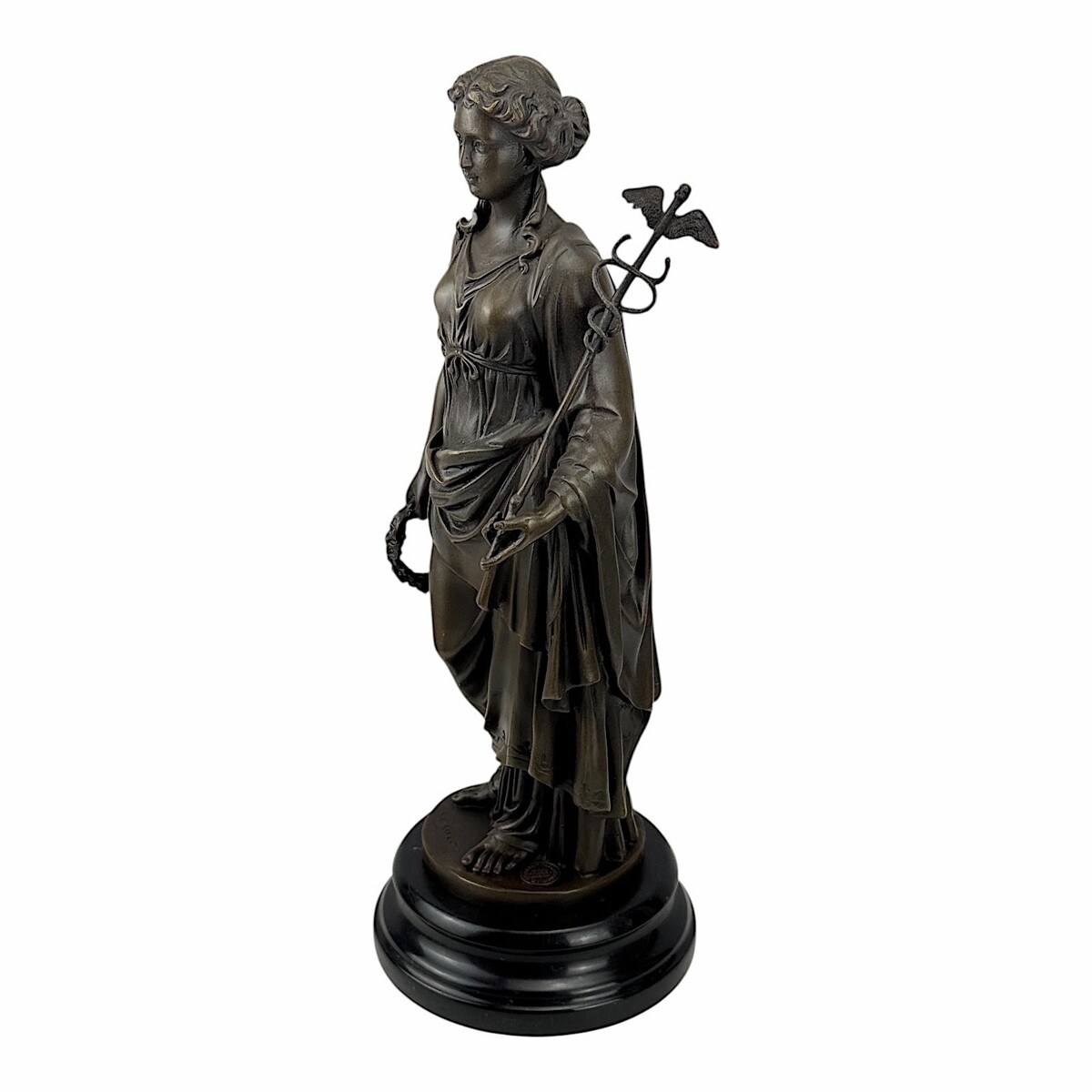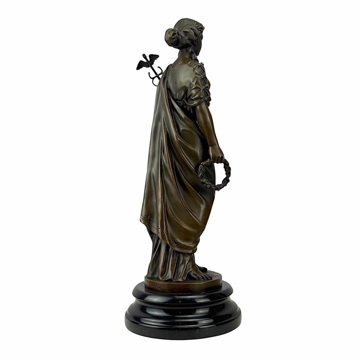 Cast in 100% real bronze and mounted on a base of natural Greek marble, the sculpture stands as a tribute to the power, intelligence, and grace of the divine warrior.