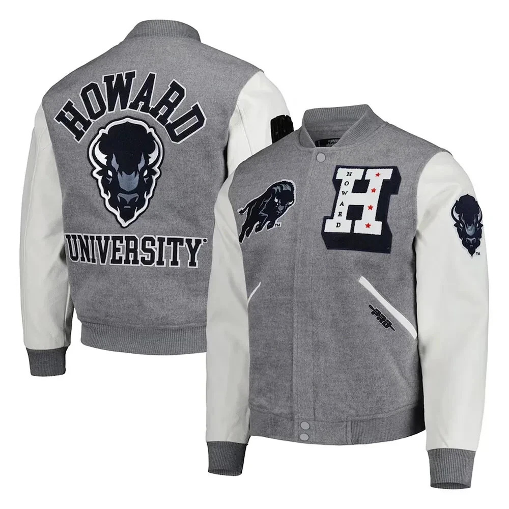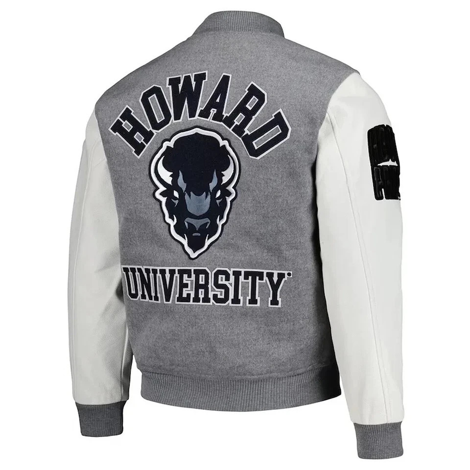 Howard University Varsity Jacket – Grey and White HBCU with Bison Patches