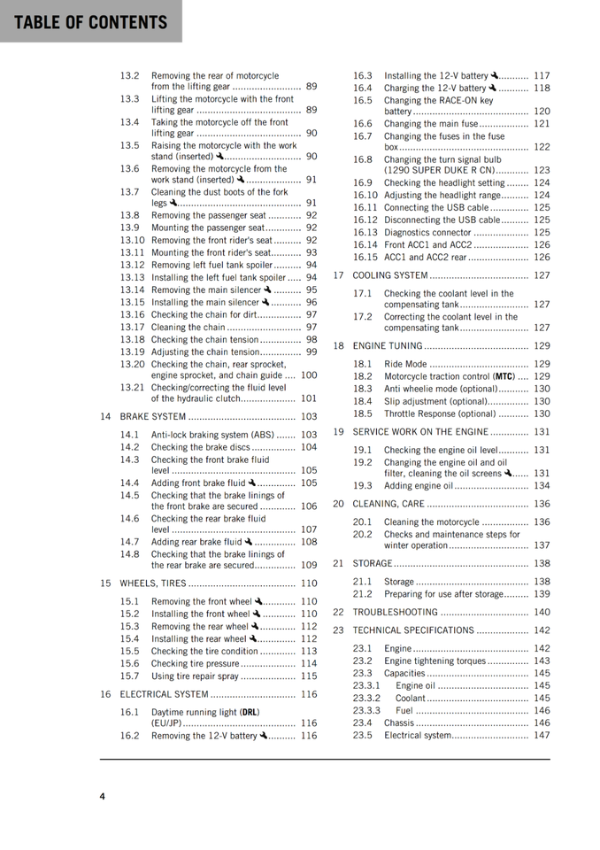 KTM 2022 - 1290 SUPER DUKE R - OWNERS MANUAL USER GUIDE
