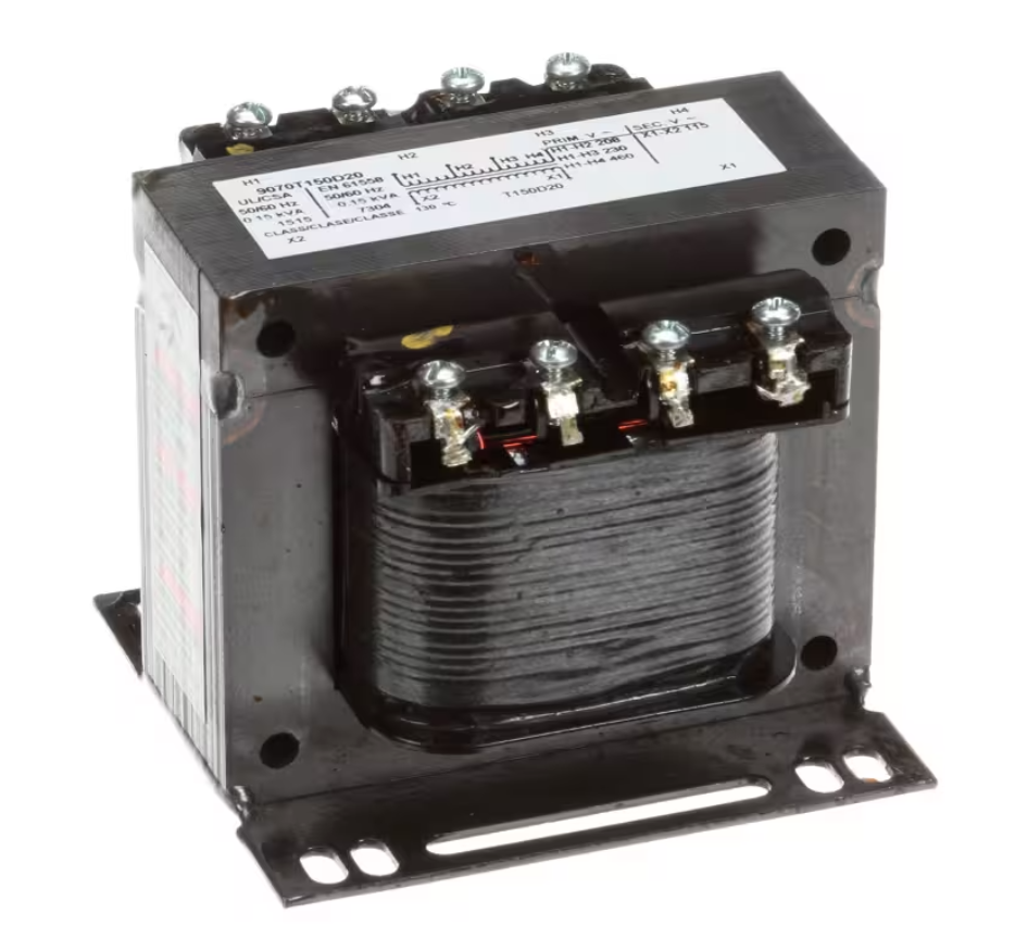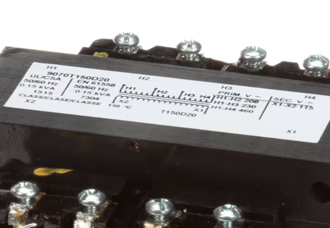 The Hobart 9070T150D20 transformer is a high-quality step-down transformer designed to convert multiple primary voltages (208V, 230V, or 460V) into a stable 115V output. With a 150VA power rating and built to EN61558 standards, it delivers safe and reliable low-voltage power to control panels, timers, and electrical systems in Hobart commercial dishwashers and warewashing equipment.