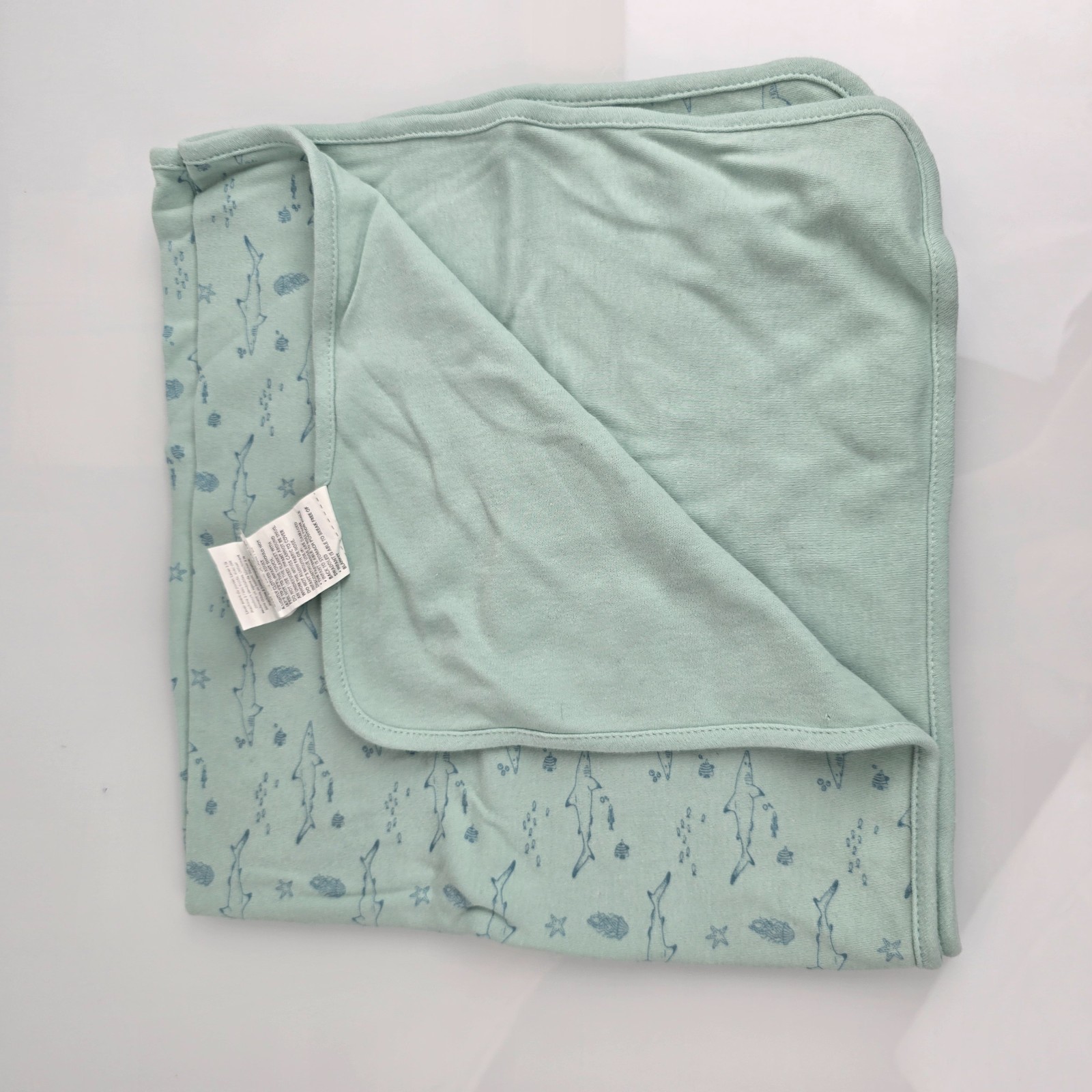Rabbit Bear Organic Baby Blanket Emily + Oliver Cotton green aqua shark swaddle
