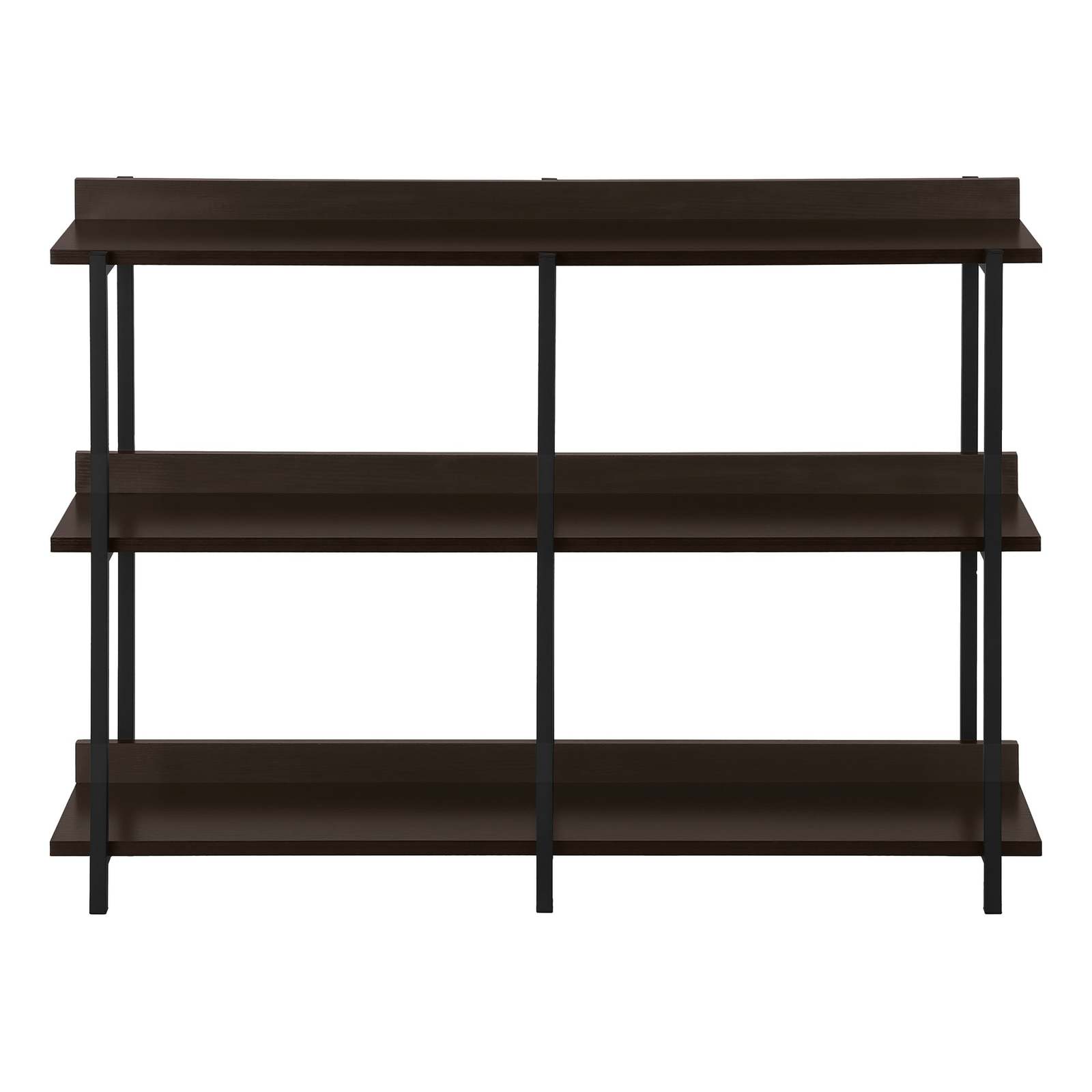 3-tier console table featuring a long, rectangular tabletop and 2 storage shelves in a elegant dark-brown espresso finish