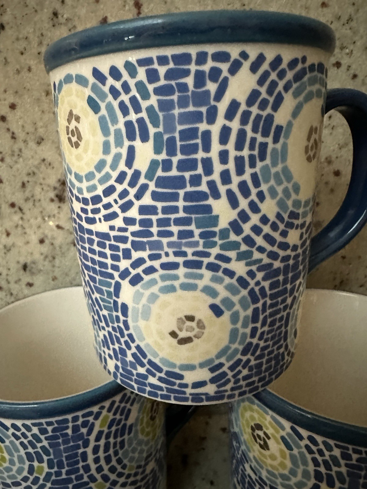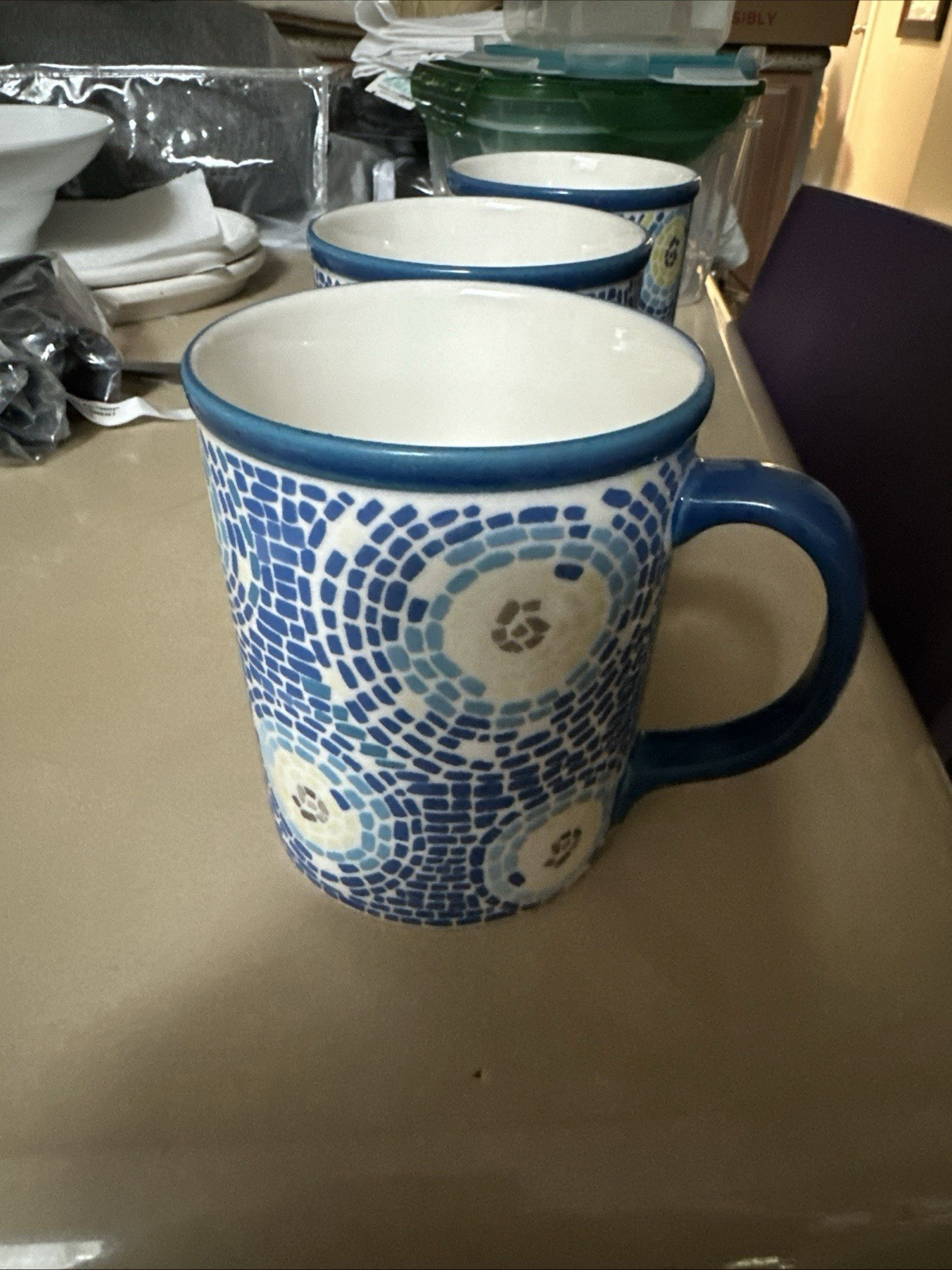 STARBUCKS 3pc MOSAIC COFFEE CUPS BLUE 16oz 2008 Beautiful
