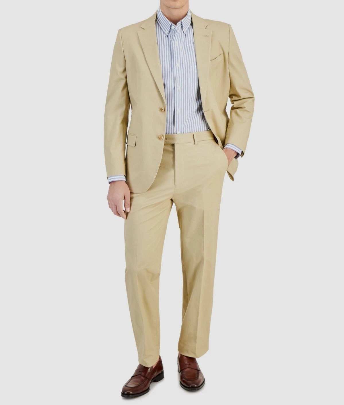 Nautica Gaff Mens Modern-Fit Seasonal Cotton Stretch 2PC Suit Solid Tan-36 30/32