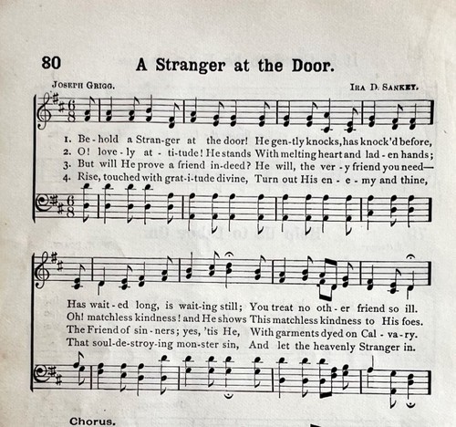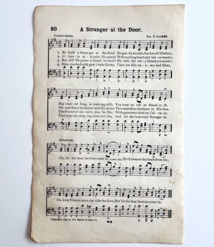 1894 Sheet Music A Stranger At The Door Religious Victorian Hymns 7.75 X 5"