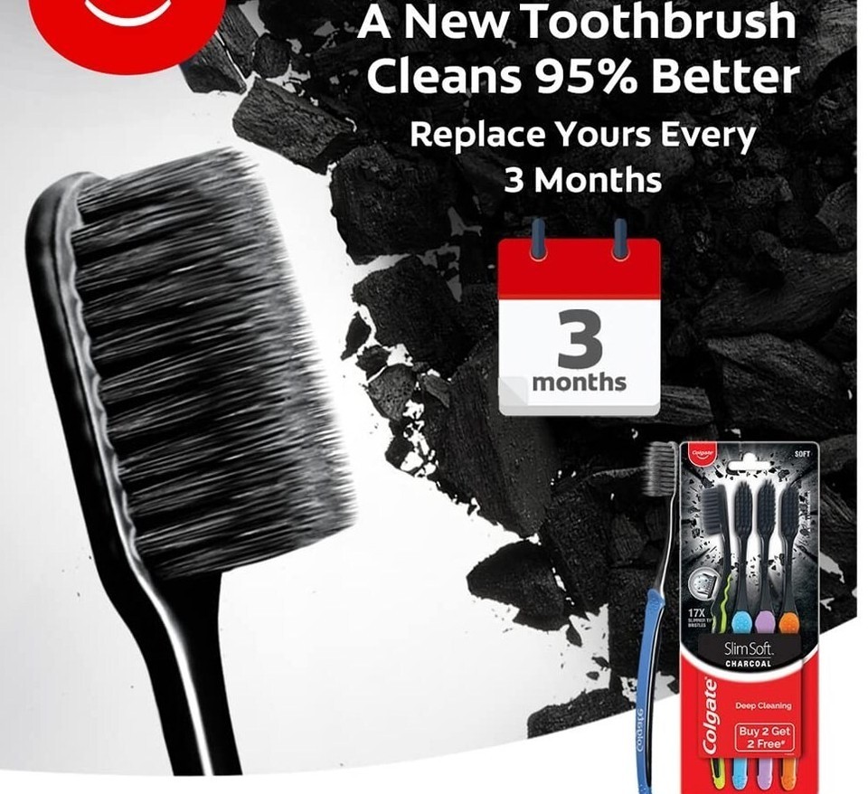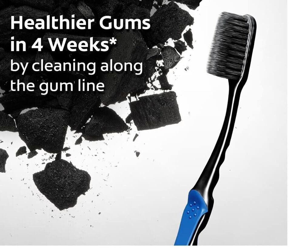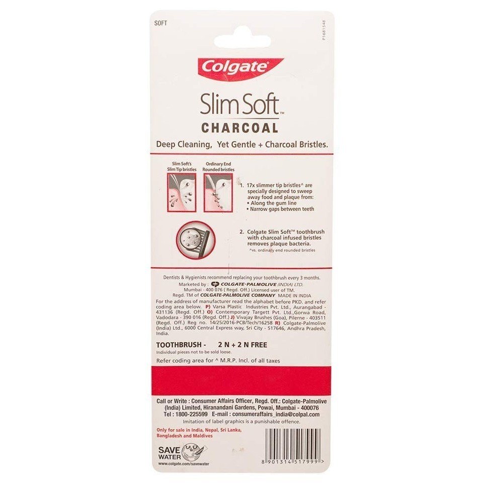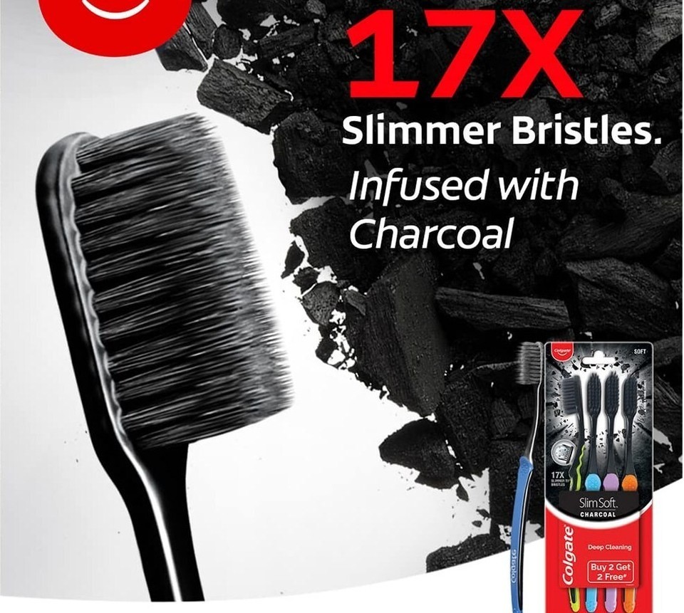 That?s where Colgate SlimSoft Charcoal comes in. Its superfine, stylish black charcoal infused bristles removes plaque germs. The bristles clean deep between your teeth and along your gum line, reaching spots that regular bristles cannot reach, and effectively removing germs. Each session with this toothbrush means dark day for germs.