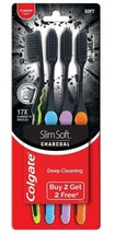Colgate Slim Soft Charcoal Toothbrush Pack of 4 Toothbrushes Assorted Colors New