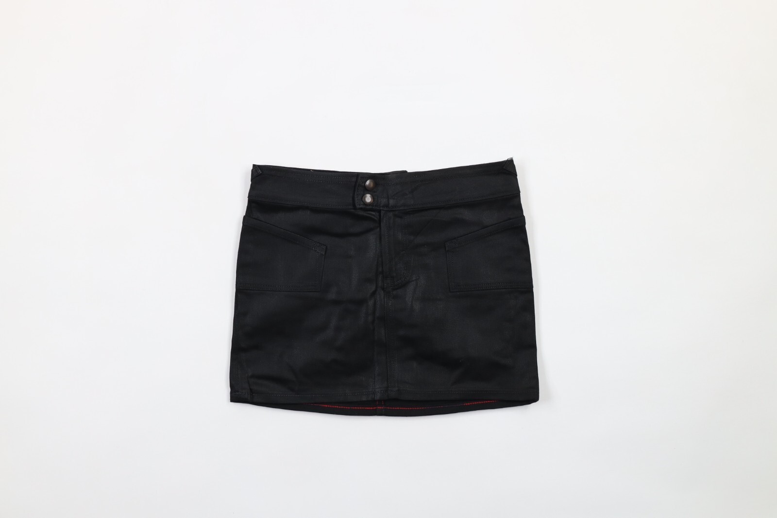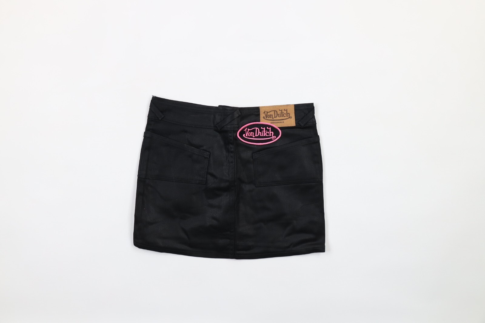 NOS Vintage Y2K Von Dutch Womens XS Spell Out Stretch Denim Mini Skirt Black USA