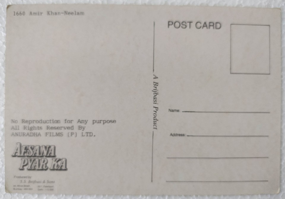 Bollywood Actor Aamir Khan Neelam Rare Original Post card Postcard India