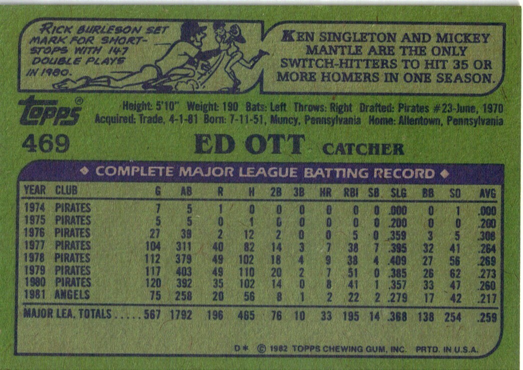 1982 Topps Ed Ott California Angels #469 Baseball Card