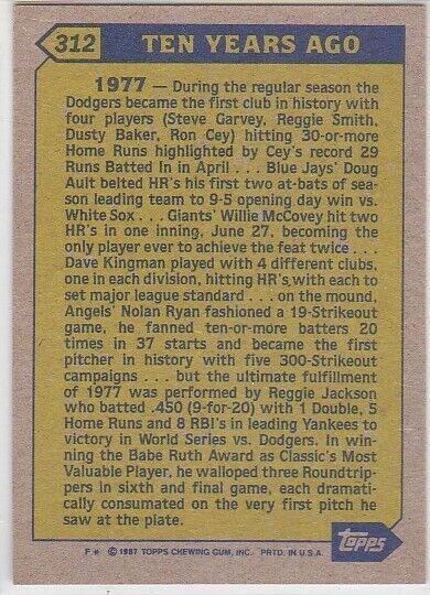 G) 1987 Topps Baseball Trading Card - Reggie Jackson #312
