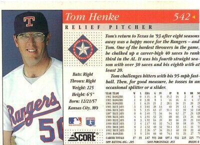 1994 Score MLB Baseball Trading Card - Tom Henke - Texas Rangers #542