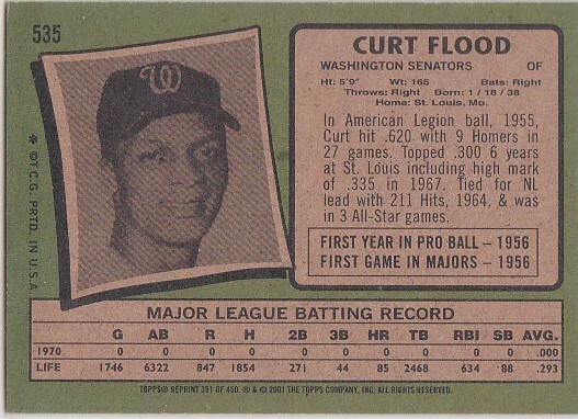 GS) 2001 Topps Archives Baseball Trading Card - Curt Flood - #351