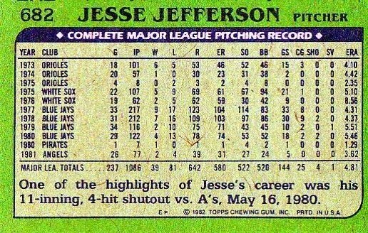 1982 Topps Baseball Card - Jesse Jefferson - California Angels #682