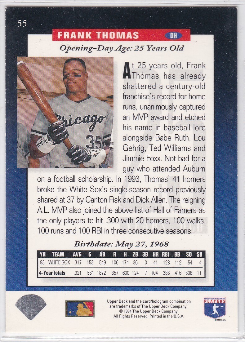 G) 1994 Upper Deck Baseball Trading Card - Frank Thomas #55