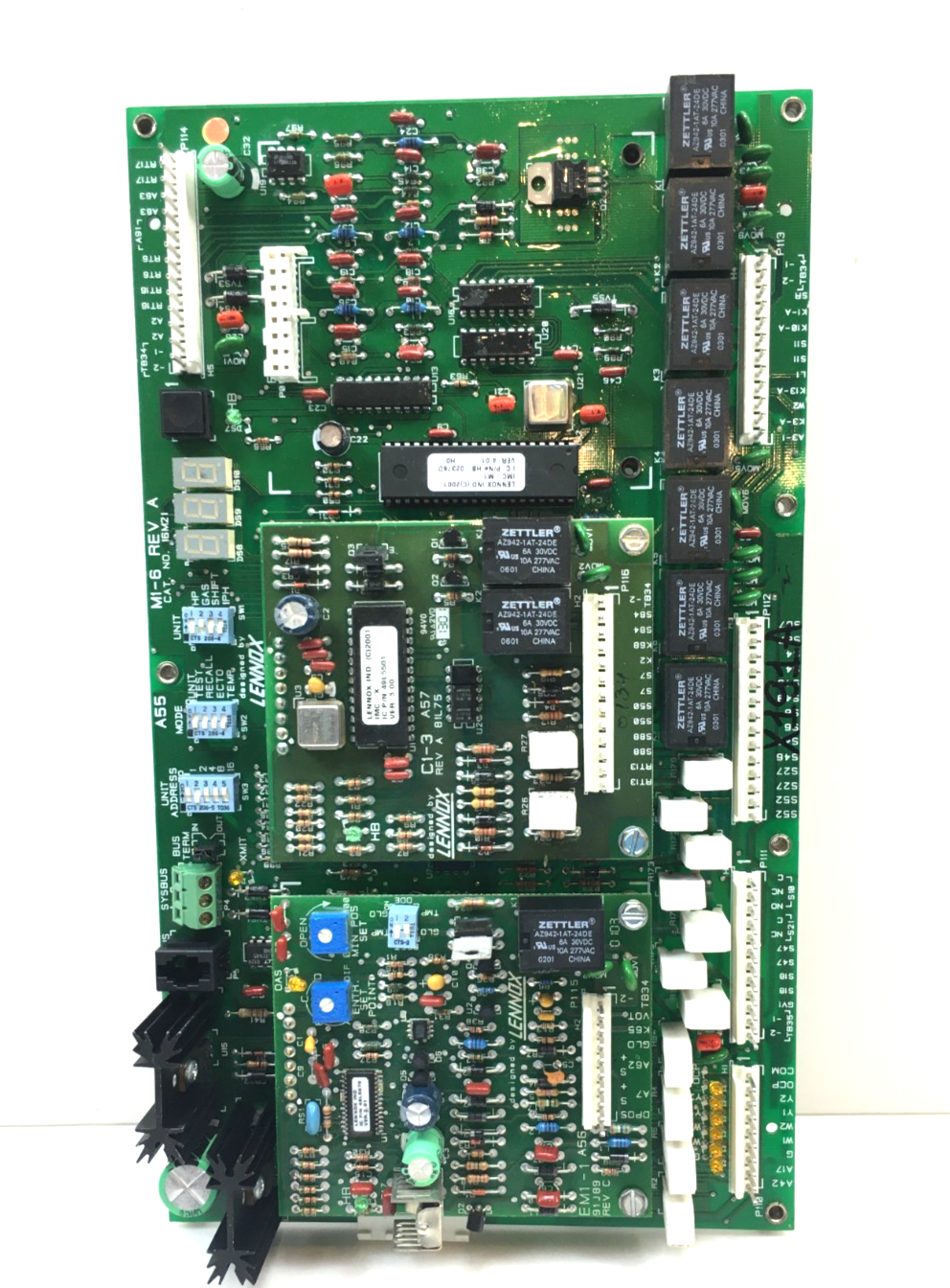 This is LENNOX A55 M1-6 rev A 16M21 Furnace Control Board with A56 91J89 rev C and A57 81L75 Rev A included used
