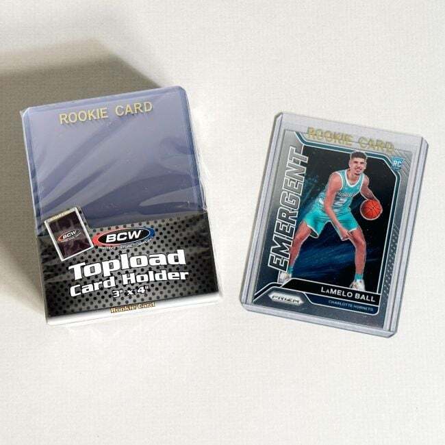 The BCW 3X4 Topload Card Holder with Rookie Imprinted Gold is the ultimate solution for protecting, storing, and displaying your valuable trading cards. Crafted from high-quality, rigid PVC, this toploader ensures that your cards remain safe and intact for years to come. Each toploader features the distinctive lettering 'ROOKIE CARD' imprinted in gold, making it the perfect choice for preserving and showcasing your rookie cards. This special imprint not only adds a touch of elegance but also highlights the significance of your collection.