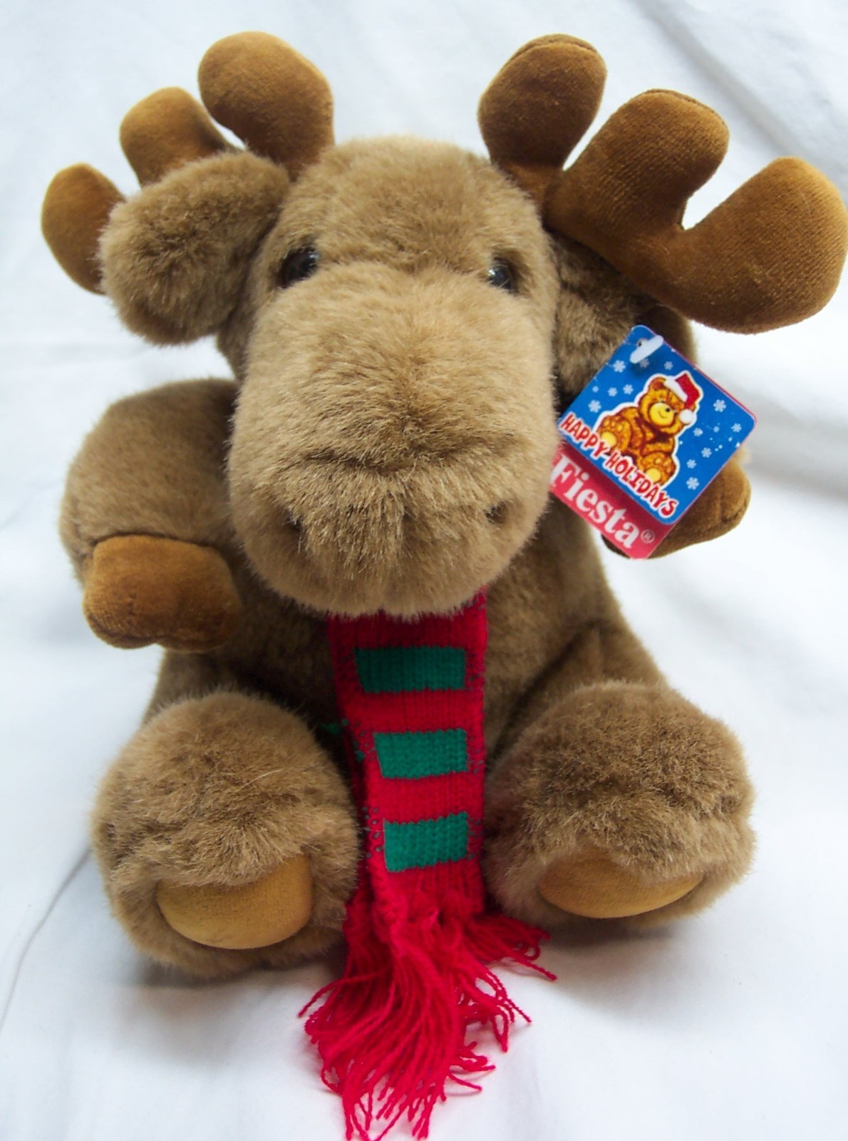 VINTAGE Fiesta 1996 MOOSE WITH RED & GREEN SCARF 8" Plush STUFFED ANIMAL Toy