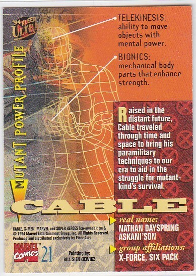 N) 1994 Fleer Ultra Marvel Trading Card X-Men Cable #21