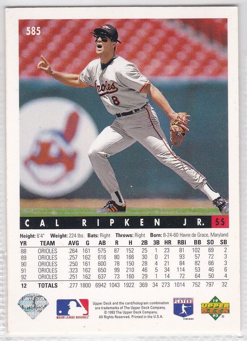 G) 1993 Upper Deck MLB Baseball Trading Card - Cal Ripken Jr. #585
